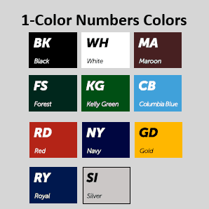 Screen printed numbers are very popular option for Alleson Athletic & Badger Sportswear baseball, basketball, football and softball jerseys, sweatshirts and tees. Choose from 1 and 2-color options.