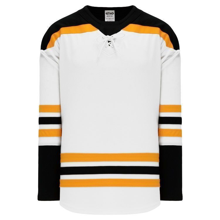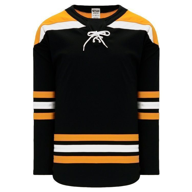 Blank Boston Bruins home and away hockey jerseys feature pro-weight AK-Knit fabric with authentic sewn Bruins striping pattern. AK BOS396B BOS397B Bruins blank hockey jerseys also feature 2-layers of material on the shoulders / elbows, edge lace up necks with knitted trim design and rounded bottom hems. Buy blank or customize with screen printing or tackle twill logos, numbers and player names. Purchase youth through adult goalie cut sizes. Made in Canada.