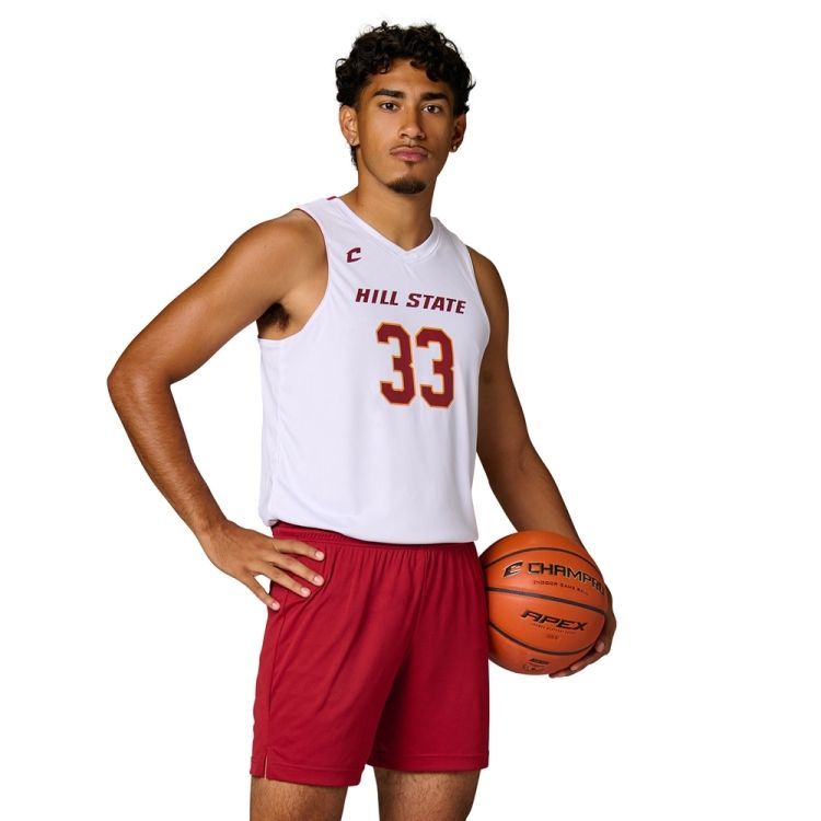 Champro BBJ33 Victorious reversible basketball jersey features 100% polyester Z-Cloth DRI-GEAR wicking interlock fabric that pulls moisture away from the body. Champro BBJ33 reversible jersey also features contrast inserts tapered v-neck collar, UPF 50+ sun protection and a straight double needle hemmed bottom.