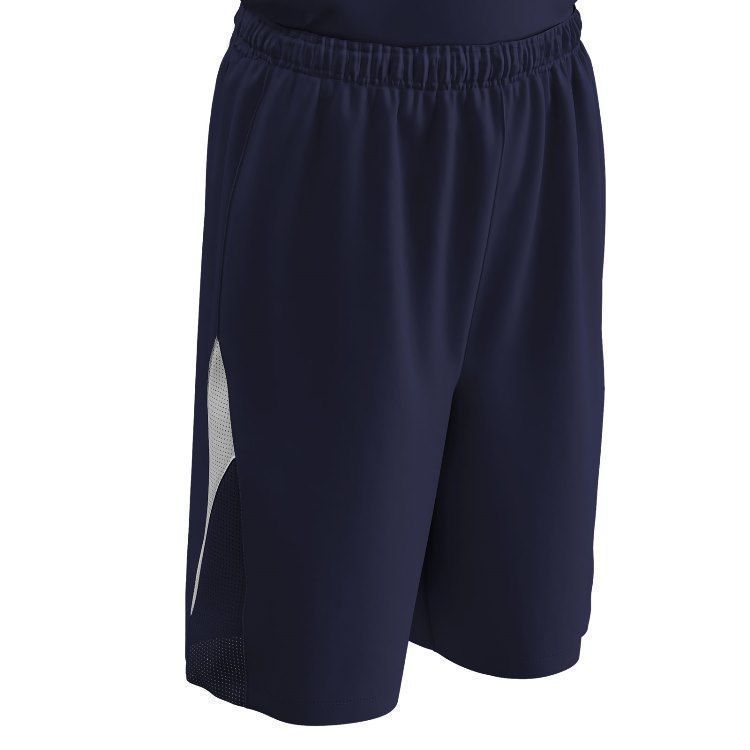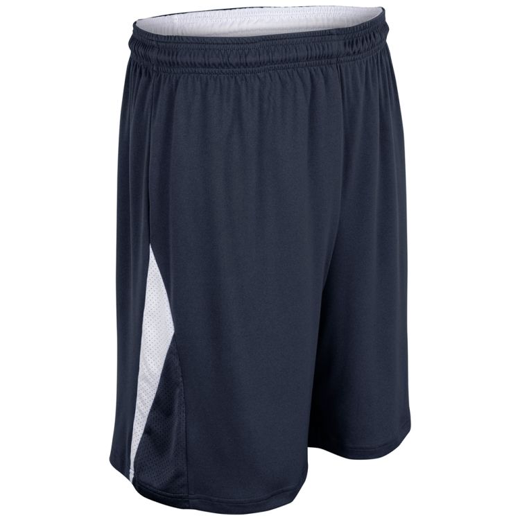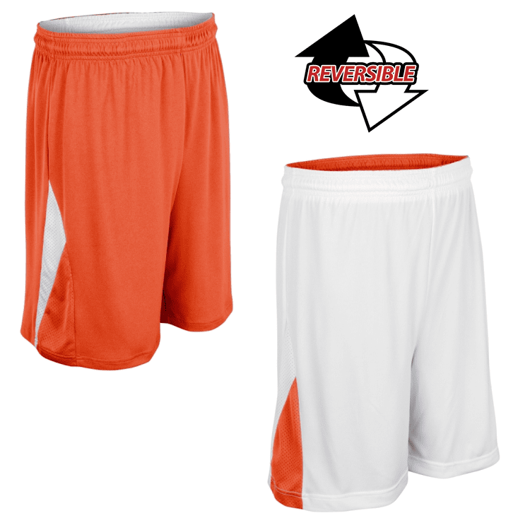 Champro BBS14 wicking reversible basketball shorts features 100% polyester Z-75 Dri-Gear wicking interlock fabric. Champro BBS14 shorts are fully reversible for wearing on either side and also have a covered elastic waistband with inside draw cord, 9" inseam, full athletic cut and contrast color pin-dot mesh side inserts.