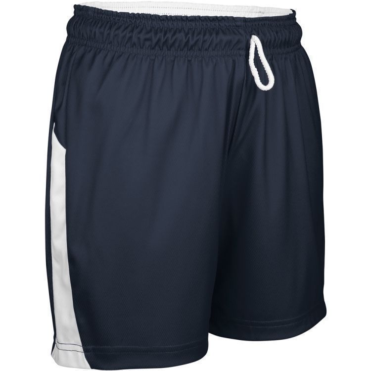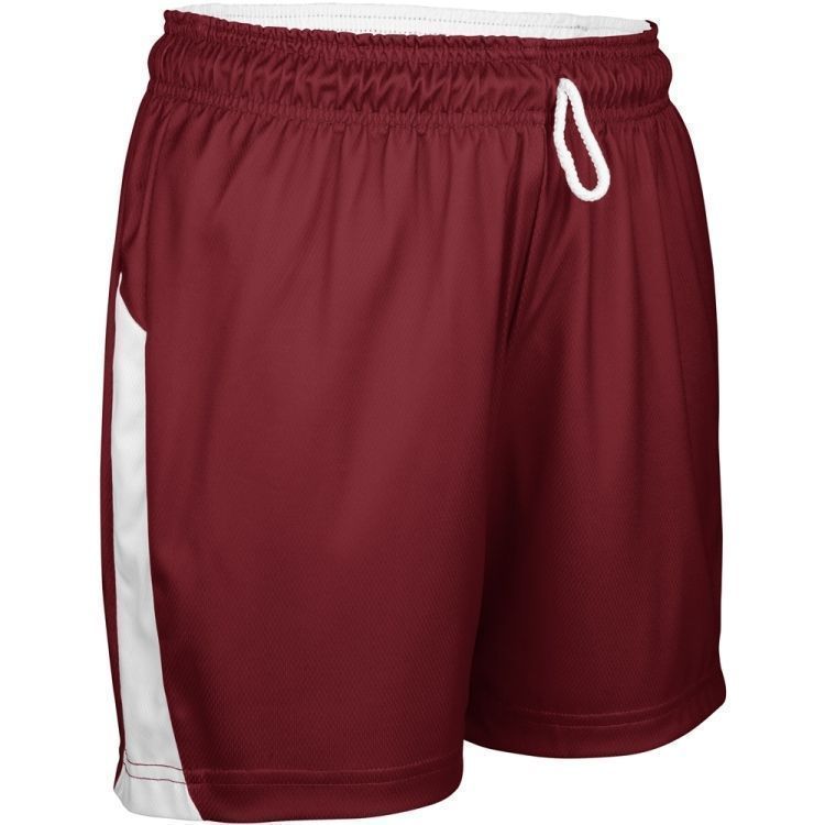 Champro BBS41W womens wicking reversible basketball shorts features 100% polyester birds eye mesh fabric with contrast color side stripes. Champro BBS41W ladies shorts are fully reversible for wearing on either side and also have a covered elastic waistband with inside draw cord, 9" inseam and full athletic cut.