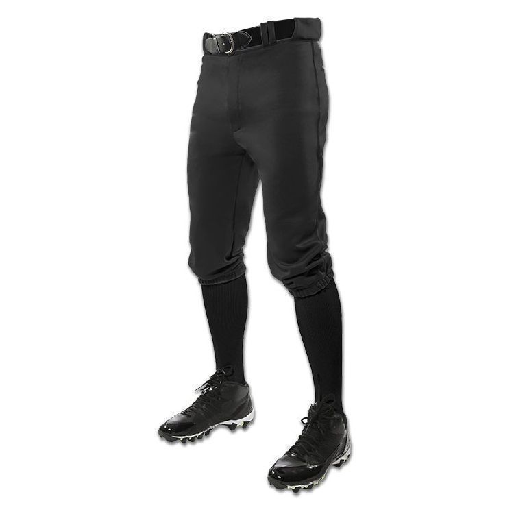 Champro BP10 baseball knicker pants are made of 14oz. Tek- knit fabric in a solid color design. Champro baseball knickers have a knicker cut with elastic bottoms, 2-1/2 inch wide waistband with gripper waist, 7 pro style belts loops, double reinforced knees, dual snap closure with zipper fly, two inset back pockets and a straight leg relaxed fit.
