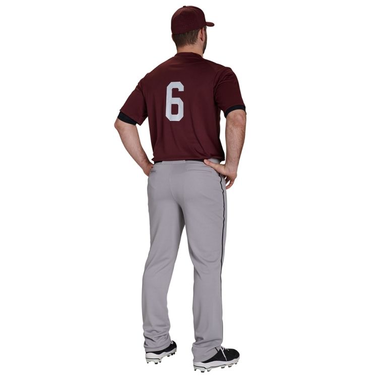 Champro BP41U MVP piped baseball pants are made of 12.5oz. double knit abrasion resistant fabric with 3/16" side piping. Champro piped baseball pants have open bottom hems, 7 pro style belts loops, double reinforced knees, dual snap closure with zipper fly, two inset back pockets and a straight leg relaxed fit.