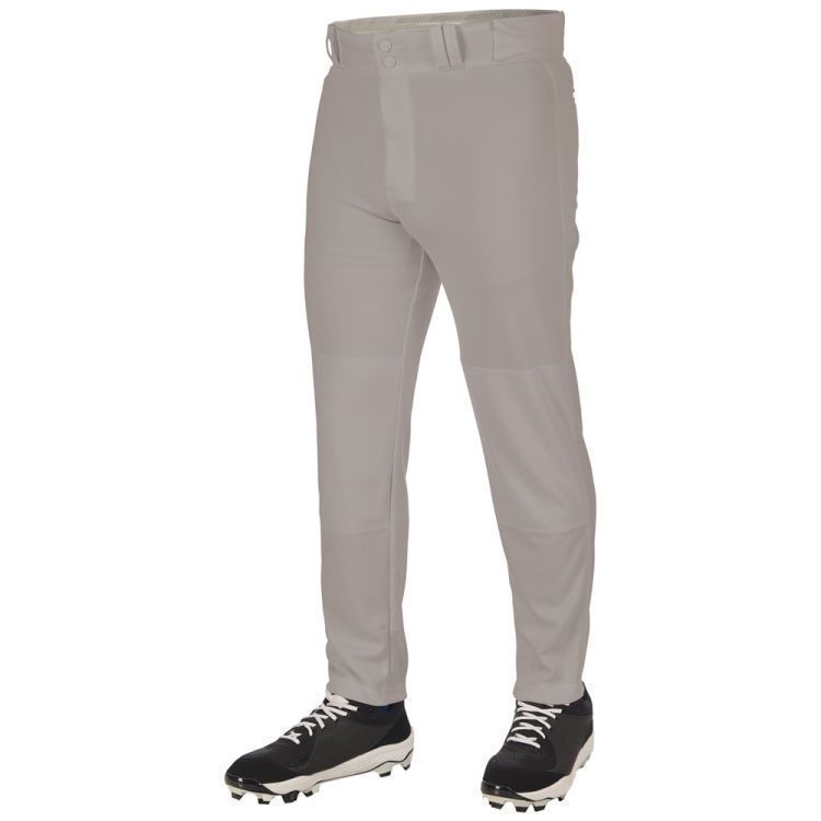 Champro BP64 baseball pants are made of 14oz. 4-way stretch Tek-knit fabric, fitted with tapered bottom leg design. Champro baseball pants have elastic bottom hems, 2-1/2 inch wide waistband with gripper waist, 7 pro style belts loops, double reinforced knees, dual snap closure with zipper fly and two inset back pockets.