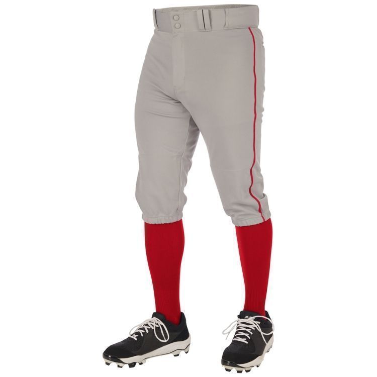 Champro BP70 piped baseball knicker pants are made of 4-way stretch 14oz. Tek- knit fabric with 3/16 inch side seam piping. Champro piped baseball knickers have a knicker cut with elastic bottoms, semi fitted design, 2-1/2 inch wide waistband with gripper waist, 7 pro style belts loops, double reinforced knees, dual snap closure with zipper fly and two inset back pockets.