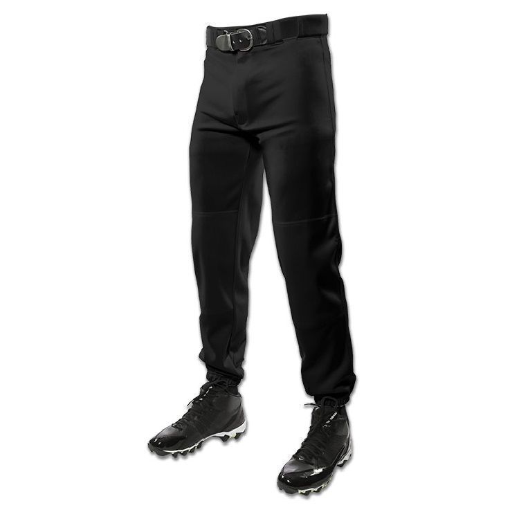 Champro BP9 baseball pants are made of 14oz. Tek-knit fabric with a solid color design. Champro Triple Crown baseball pants have elastic bottom hems, 2-1/2 inch wide waistband with gripper waist, 7 pro style belts loops, double reinforced knees, dual snap closure with zipper fly, two inset back pockets and an ankle length design.