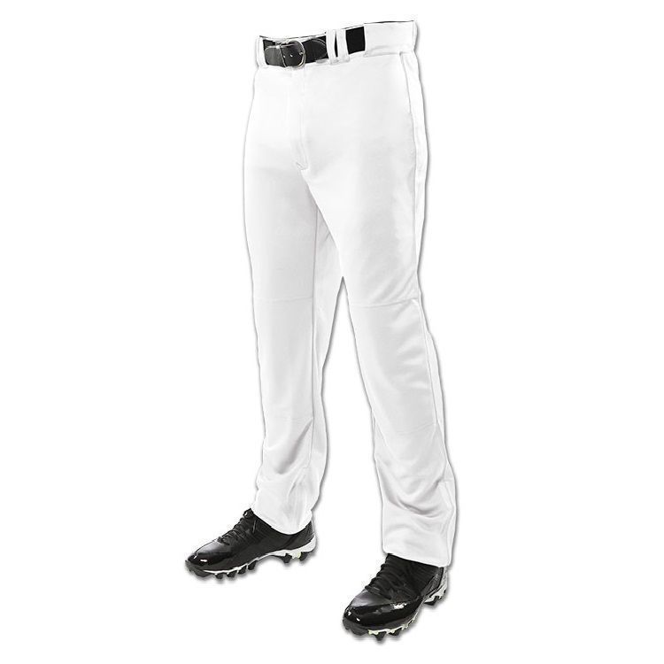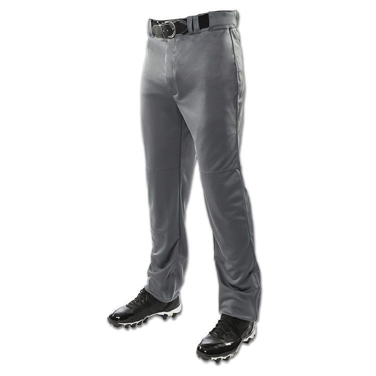 Champro BP9U baseball pants are made of 14oz. Tek-knit fabric with a solid color design. Champro Triple Crown baseball pants have open bottom hems, 2-1/2 inch wide waistband with gripper waist, Velcro adjustable inseam, 7 pro style belts loops, double reinforced knees, dual snap closure with zipper fly, two inset back pockets and a straight leg relaxed fit.