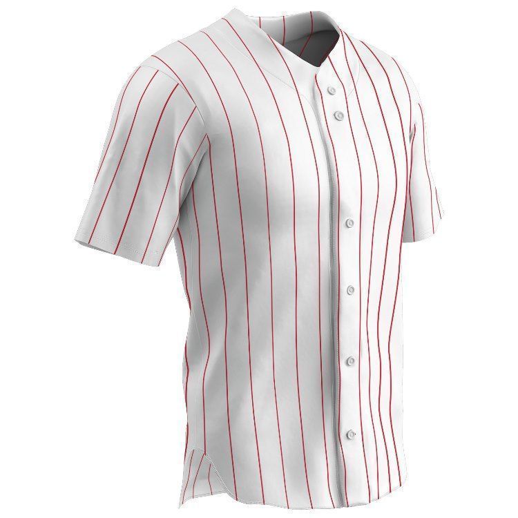 Champro BS14 Ace Pinstripe full button baseball jersey is made of 13oz. Pro-warp fabric in a pro style knitted in pinstripe design. Champro BS14 jerseys have a 6 button front spaced for lettering, set in sleeves, double stitching and a droptail bottom tail hem. Youth through adult 4XL sizes.