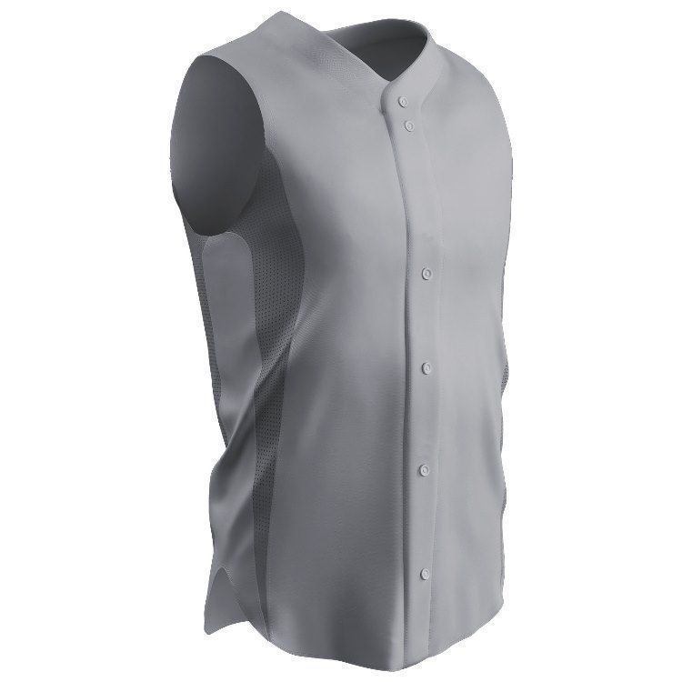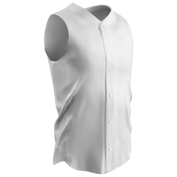 Champro BS169 full button baseball vest is made of 100% polyester Tek-Knit wicking fabric with pin-dot mesh side inserts. Champro BS169 jerseys have a 6 button front spaced for lettering, sleeveless design, double stitching and a droptail bottom tail hem. Youth through adult 3XL sizes.