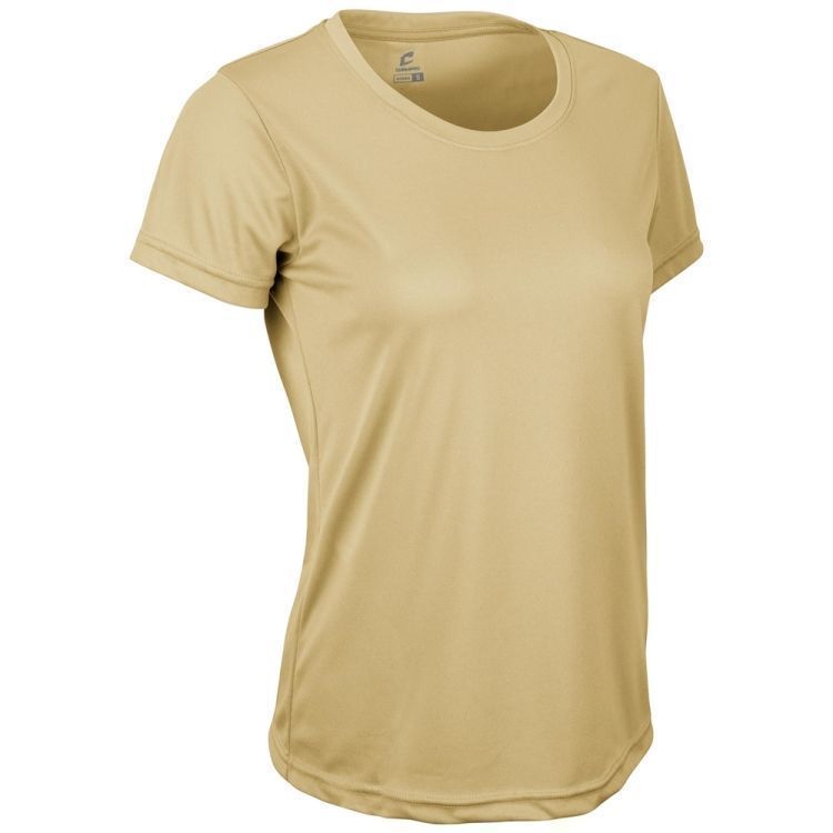 Champro BST99W Womens Wicking T Shirt features Dri-Gear polyester moisture wicking interlock fabric that pulls sweat away from the skin for easy evaporation. Champro BST99W ladies short sleeve wicking tee also features a self fabric collar, set-in sleeves, UPF 25 sun protection and double needle bottom hem. Tagless heat-seal label.