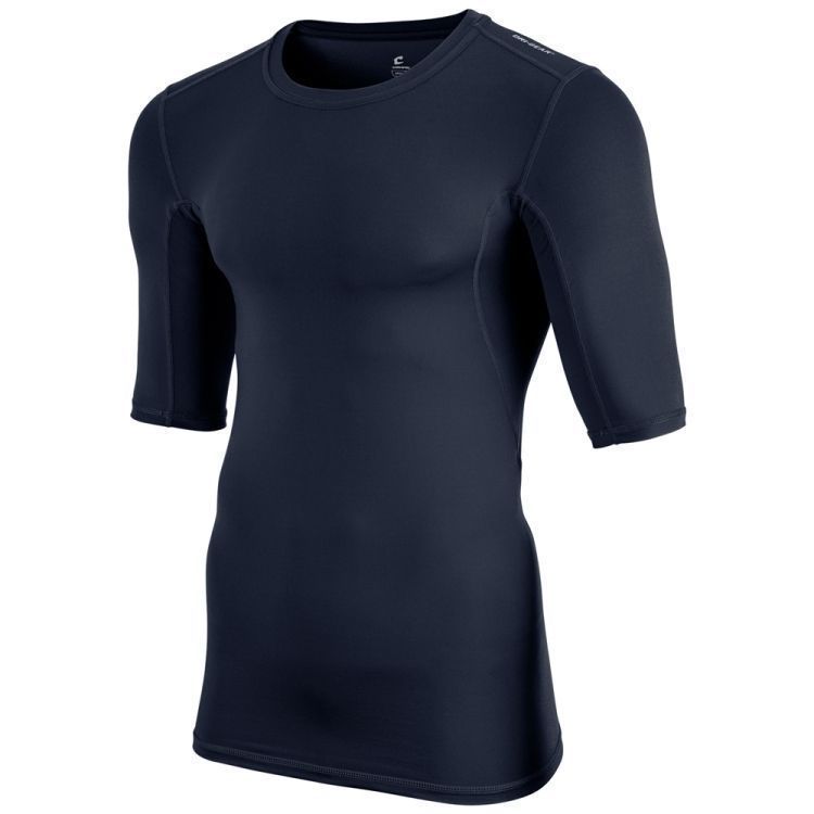 Champro CJ2 compression shirt features lightweight 88% polyester / 12% spandex fabric with 4-way compression stretch muscle fit. Champro 1/2 sleeve compression shirt also features Dri-Gear wicking technology, flat sewn seams, technical shoulder cut inserts, a crew neck collar and double needle hemmed sleeve ends and bottom.
