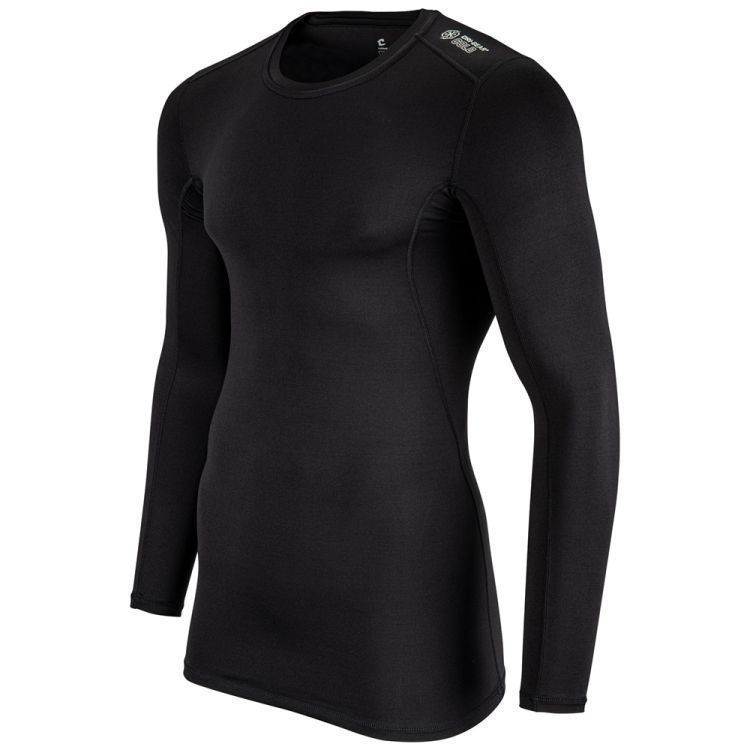 Champro CWCJ1 compression shirt features lightweight 88% polyester / 12% spandex heavyweight fabric with 4-way compression stretch muscle fit. Champro LS compression shirt also features Dri-Gear wicking technology, flat lock sewn seams, technical shoulder cut inserts, a crew neck collar and double needle hemmed sleeve ends and bottom.