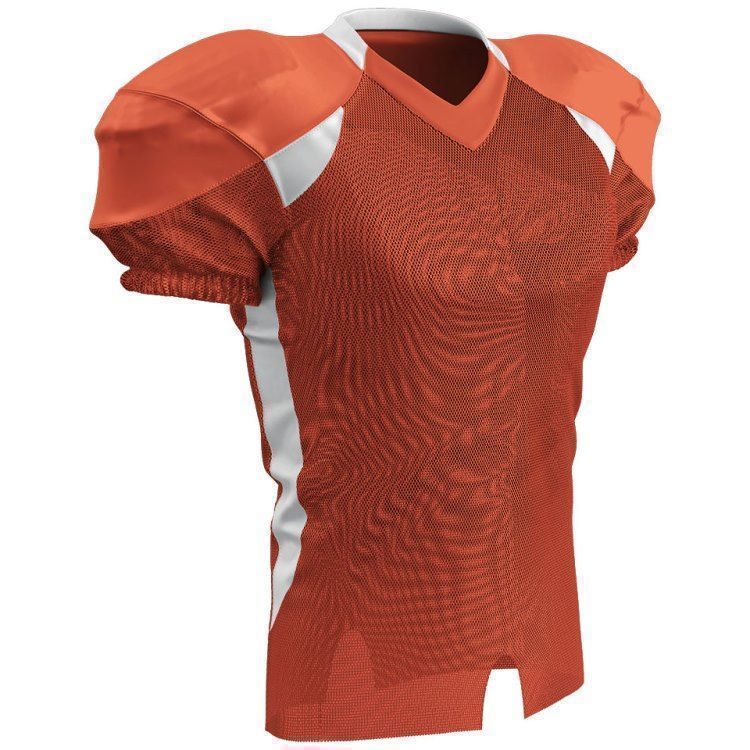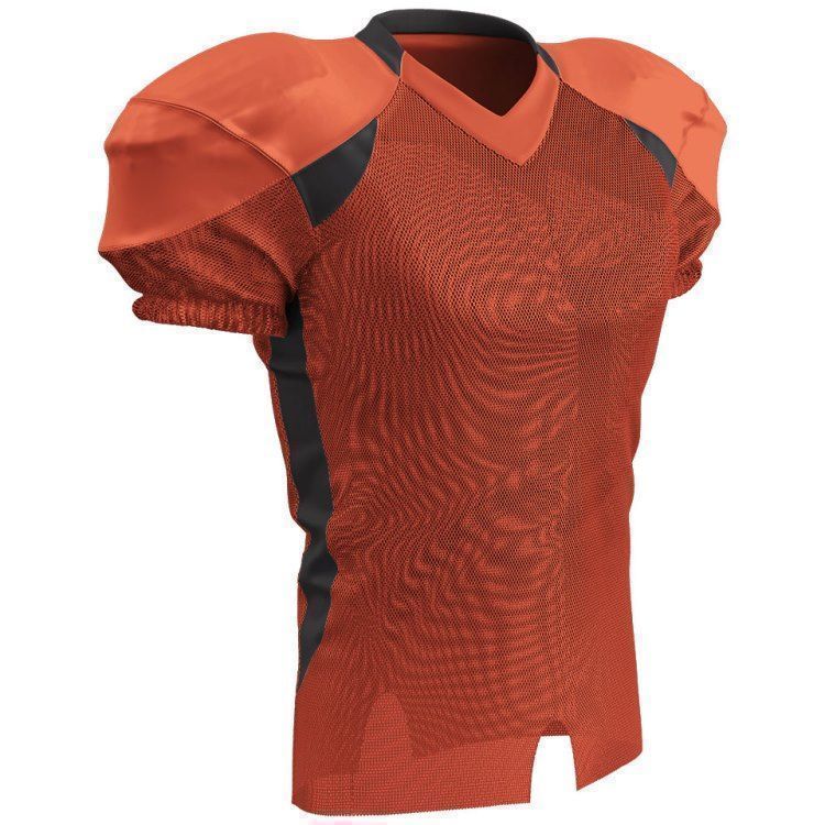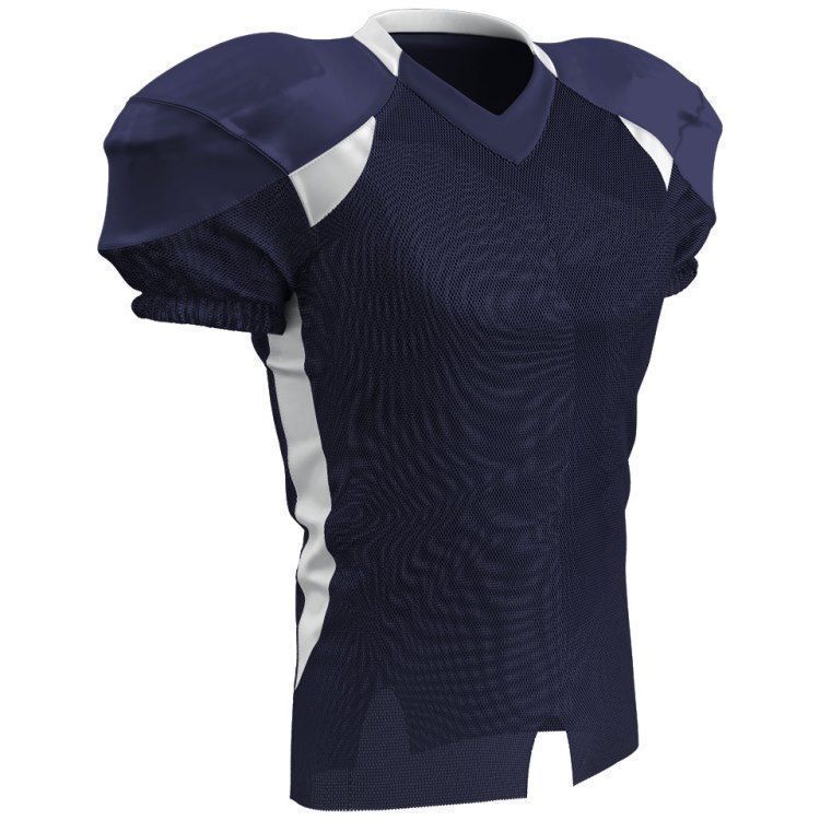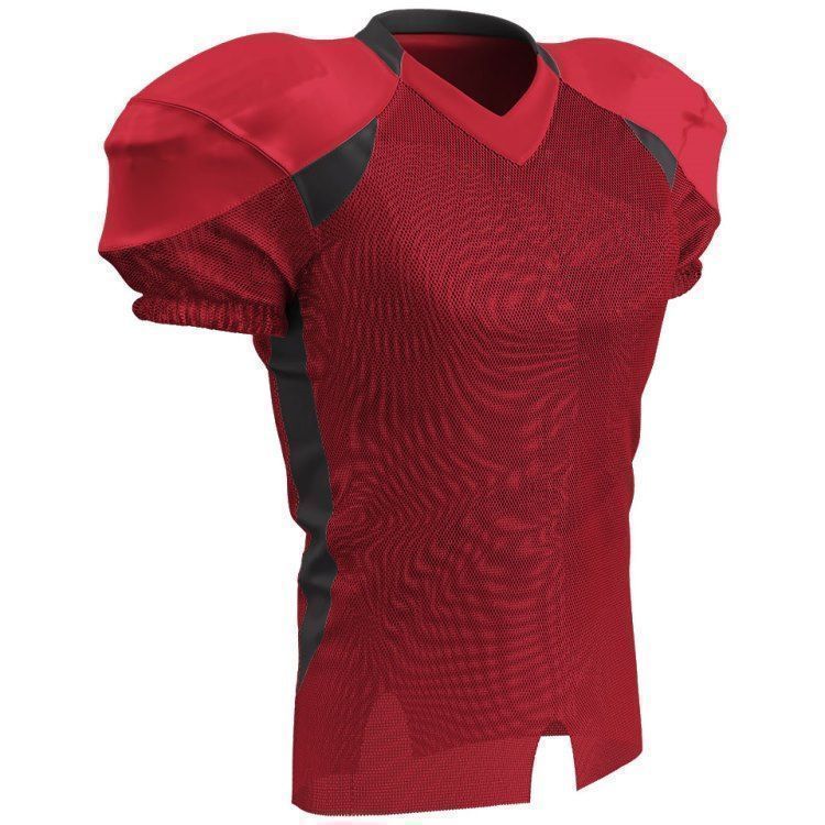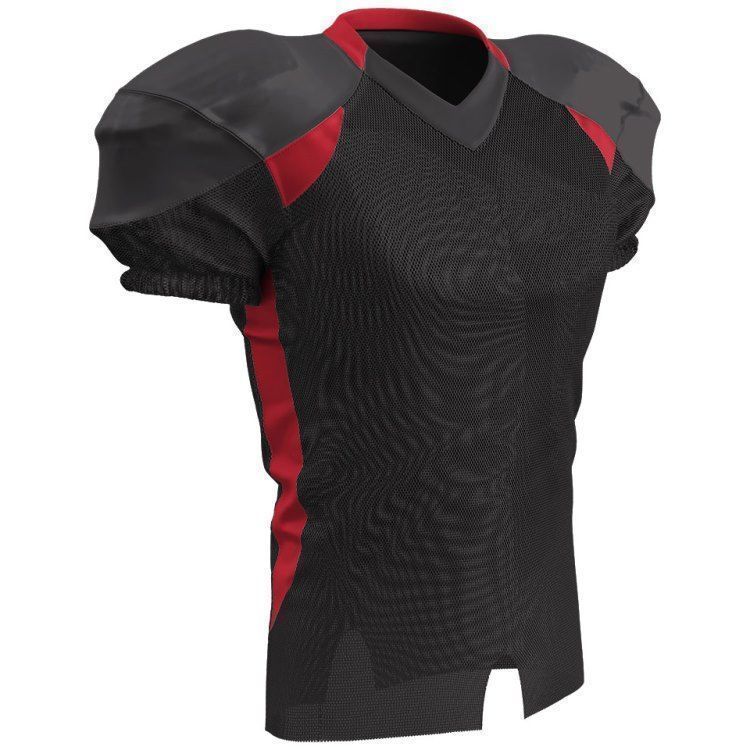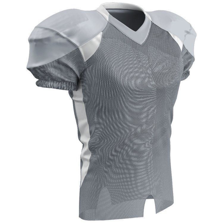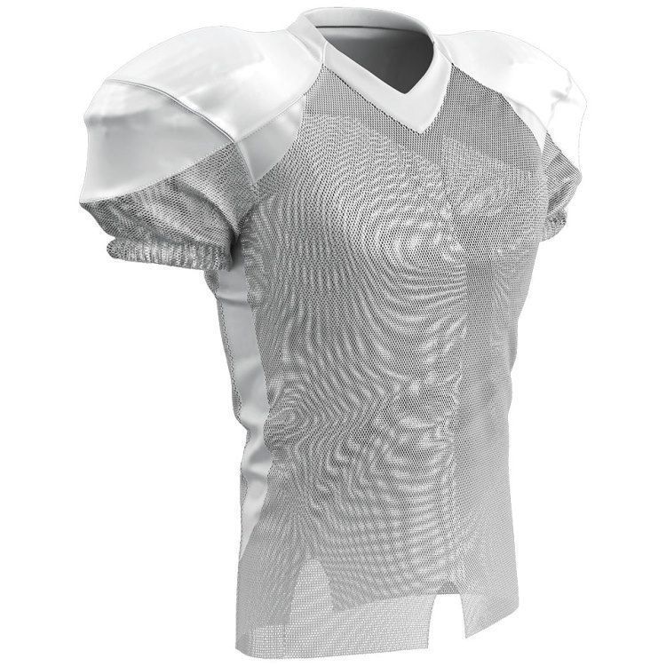Champro FJ20 football jersey features polyester stretch mesh body / sleeves, polyester dazzle shoulders and 13% elastane stripes / side inserts for a fitted pro-style fit. Champro FJ20 jersey also features contrast shoulder inserts / sides, double ply cowl, mitered v-neck, coverstitched seams, and a full length body cut with motion vents.