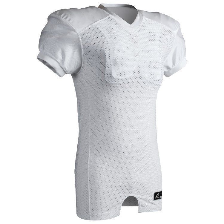 Champro FJ29 football jersey features 94% polyester / 6% spandex stretch mesh body, 100% polyester dazzle shoulders/sleeves and 13% elastane collar and cuffs for a fitted pro-style fit. Champro FJ29 jersey also features double ply cowl, mitered v-neck, coverstitched seams, and a full length body cut with motion vents.