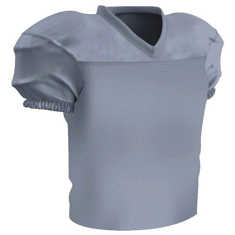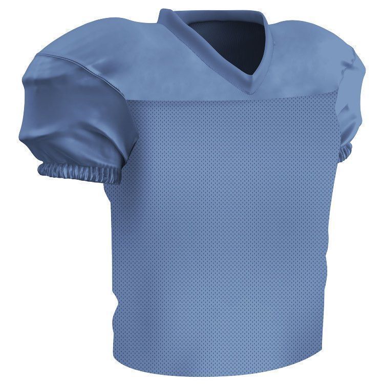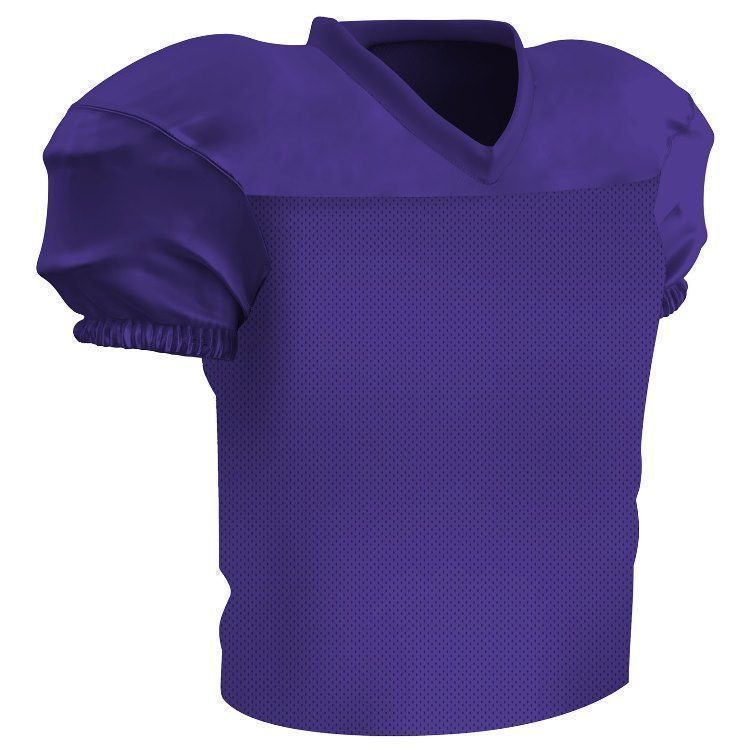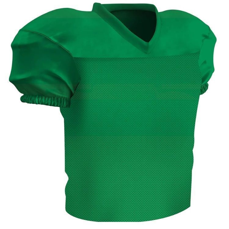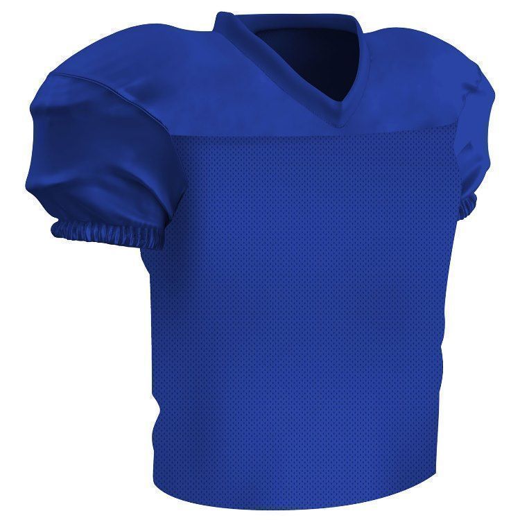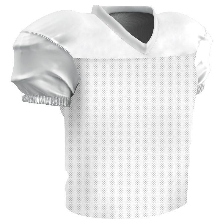Champro FJ56 football jersey features polyester stretch mesh body with polyester matte stretch dazzle shoulders and sleeves. Champro FJ56 jersey also features a mitered v-neck, coverstitched seams, and a waist length design.