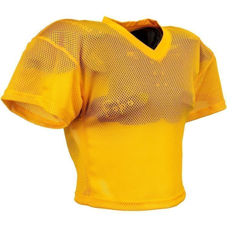 Champro FJ57 practice football jersey features polyester stretch porthole mesh body, sleeves and polyester matte stretch dazzle neck trim. Champro FJ57 jersey also features a mitered v-neck, double stitched seams, and a waist length design.