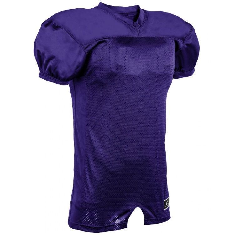 Champro FJ83 football jersey features polyester stretch mesh body / sleeves, polyester matte stretch dazzle shoulders for a fitted pro-style fit. Champro FJ83 jersey also features mitered v-neck, coverstitched seams, and a full length body cut with motion vents.