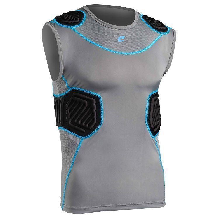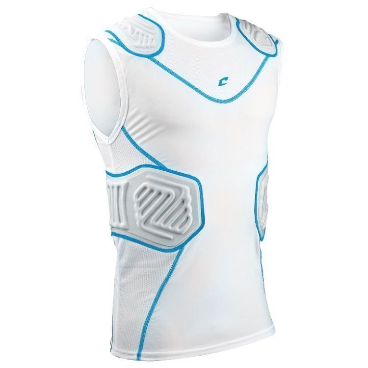 polyester / 13% spandex high compression fabric with 4-way stretch and Dri-Gear wicking technology. Champro FJU10 football compression shirt also feature a sleeveless design, low profile pads on sides and shoulders.