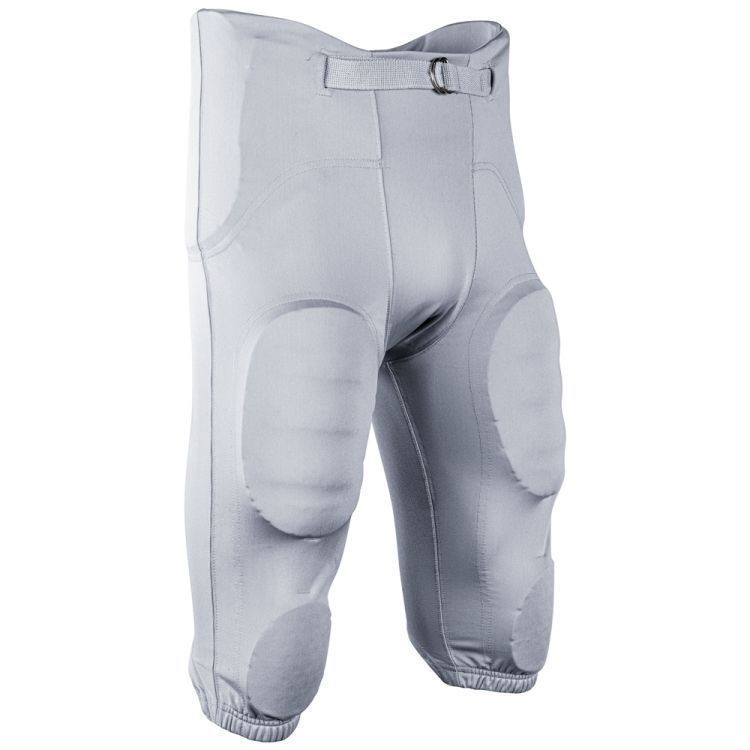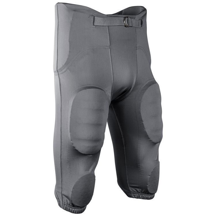Champro FPU29 integrated football pants feature aero stretch polyester matte dazzle fabric with 7 piece built in ventilated pads and collegiate cut. Pads included: 2 thigh, 2 hip, 2 knee and tailbone. Champro FPU29 football pants also have a 1" belt and no fly Duke crotch. Pants with pads are machine washable.