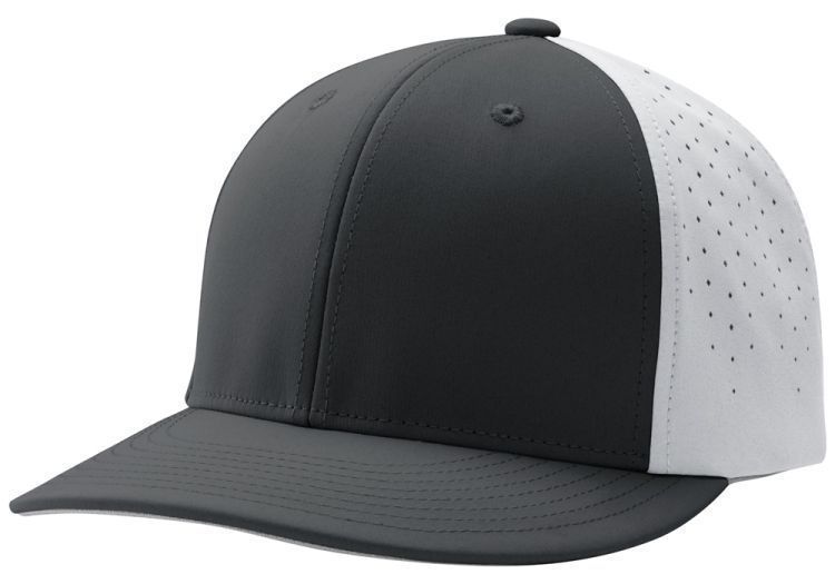 Champro HC1T Perforated Liet Flex-Fit Baseball Cap features poly spandex Dri-Gear wicking fabric / perforated hole mesh back in a 2-color design. Champro HC1T has a mid profile 6-panel design, flex-fit style, laser cut perforated holes, C-FIT wicking sweatband and anti-glare graphite grey color under visor.