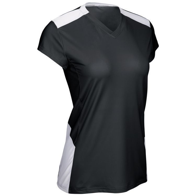 Champro VJ12 Point volleyball jersey features semi fitted poly spandex stretch fabric with mesh side inserts. Champro cap sleeve volleyball jersey also features a v-neck collar, set in short cap sleeves, and a double needle hemmed bottom.