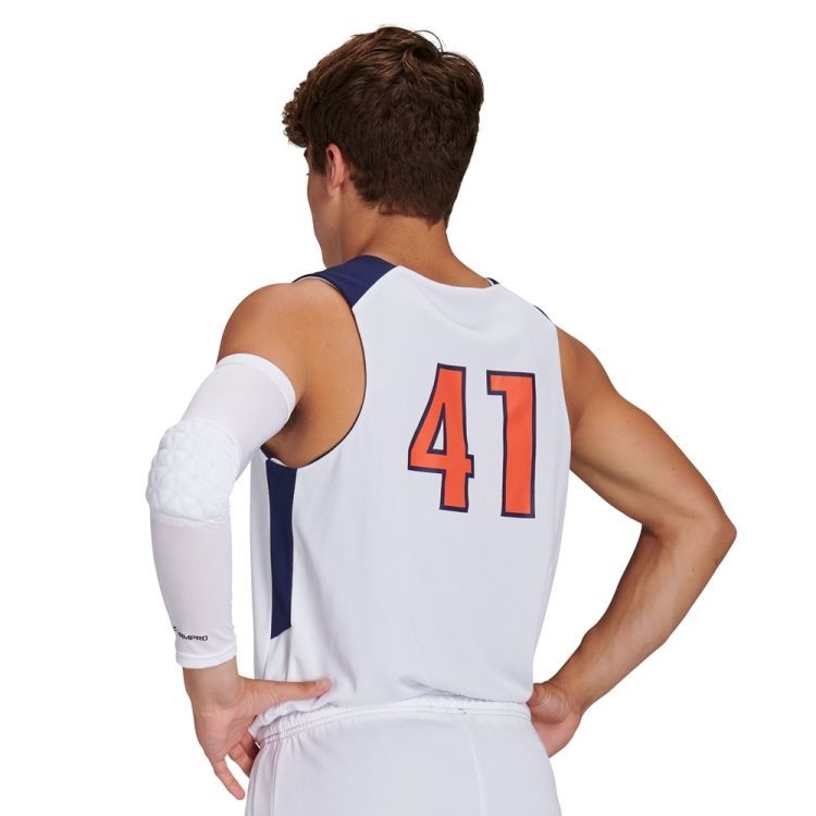 Champro BBJ41 Swish reversible basketball jersey features 100% polyester birds eye mesh DRI-GEAR wicking fabric that pulls moisture away from the body. Champro BBJ41 reversible jersey also features contrastshoulder / upper side inserts and a straight double needle hemmed bottom.