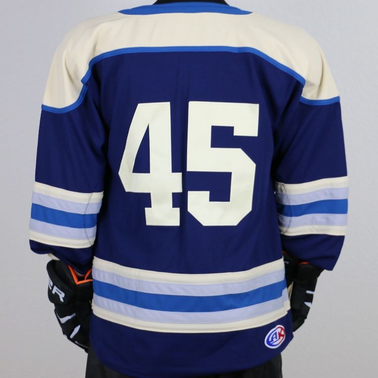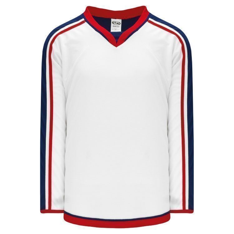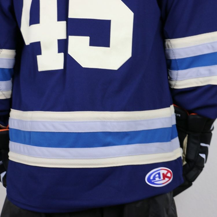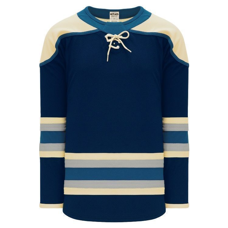 Blank Columbus Blue Jackets 3rd hockey jerseys feature pro-weight AK-Knit fabric with authentic Blue Jackets striping pattern. AK CLM373B Bluejackets blank hockey jerseys also feature 2-layers of material on the shoulders / elbows, lace up or v-necks with inlay design and rounded bottom hems. Buy blank or customize with screen printing or tackle twill logos, numbers and player names. Purchase youth through adult goalie cut sizes.