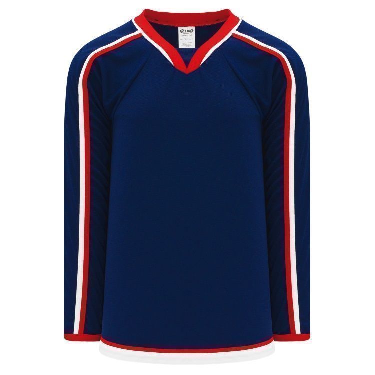 Blank Columbus Blue Jackets 3rd hockey jerseys feature pro-weight AK-Knit fabric with authentic Blue Jackets striping pattern. AK CLM373B Bluejackets blank hockey jerseys also feature 2-layers of material on the shoulders / elbows, lace up or v-necks with inlay design and rounded bottom hems. Buy blank or customize with screen printing or tackle twill logos, numbers and player names. Purchase youth through adult goalie cut sizes.