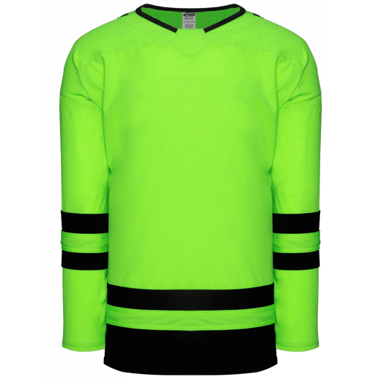 Blank Dallas Stars Blackout hockey jerseys feature pro-weight AK-Knit fabric with black and neon green patterns. Athletic Knit DAL655B DAL656B blank hockey jersey also features 2-layers of material on the shoulders / elbows, an edge neck with sewn trim and a rounded bottom hem. Buy blank or customize with screen printing or tackle twill logos, numbers and player names. Purchase youth through adult goalie cut sizes.