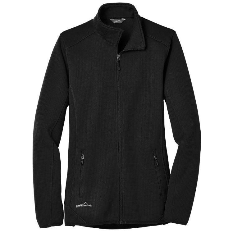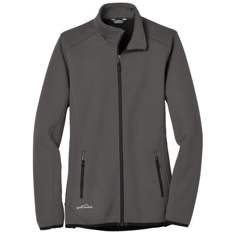 Eddie Bauer EB243 Dash womens full zip hybrid fleece jacket in a combined stretch textured and smooth fleece design. Eddie Bauer EB243 features 15.7 oz. poly knit bonded to polyester brushed back fleece with a roll-top collar, front zippered pockets with tricot lining, stretch binding at cuffs and hem. Eddie Bauer hybrid jacket has an Eddie Bauer logo on the right hem. Request a quote with your custom team logo.