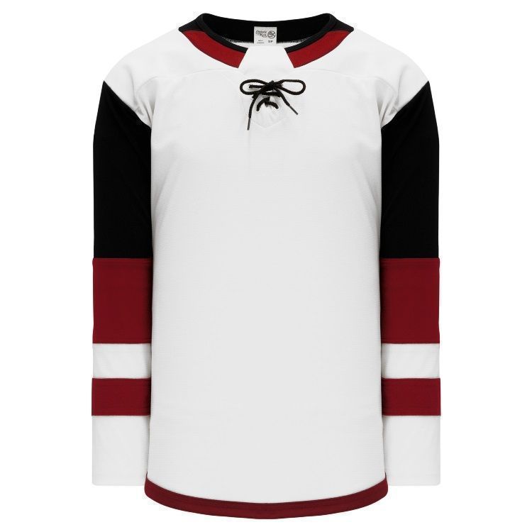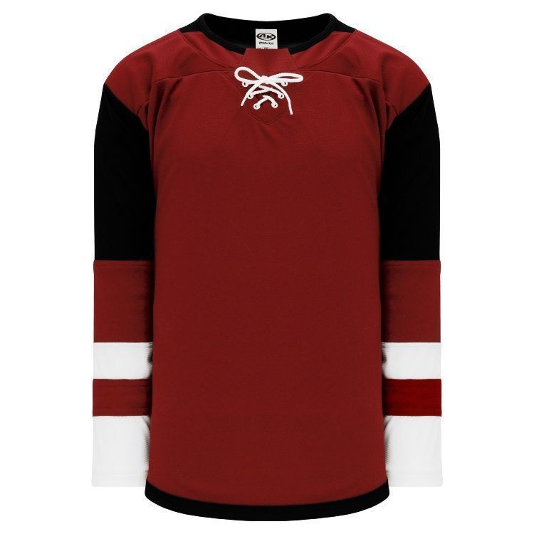 Blank Arizona Coyotes home and away hockey jerseys feature pro-weight AK-Knit fabric with authentic Coyotes striping pattern. AK ARI888B ARI889B Coyotes blank hockey jerseys also feature 2-layers of material on the shoulders / elbows, edge lace up necks with knitted trim design and rounded bottom. Buy blank or customize with screen printing or tackle twill logos, numbers and player names. Purchase youth through adult goalie cut sizes. Made in Canada.