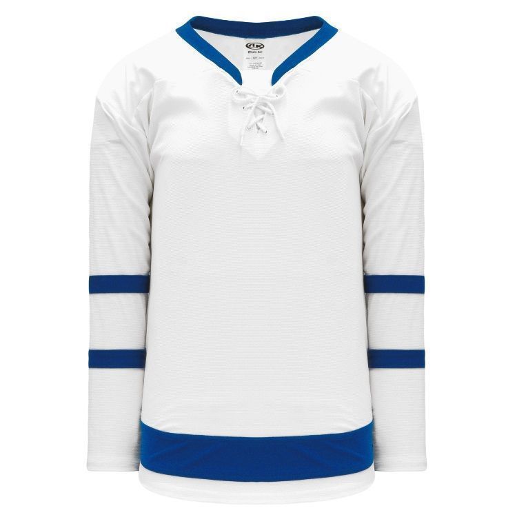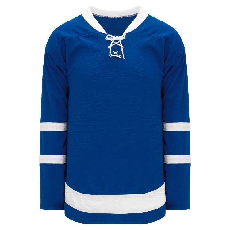 Blank Toronto Maple Leafs home and away hockey jerseys feature pro-weight AK-Knit fabric with authentic 2017 Leafs striping pattern. AK TOR204B TOR205B Maple Leafs blank hockey jerseys also feature 2-layers of material on the shoulders / elbows, lace up necks and rounded bottom hems. Buy blank or customize with screen printing or tackle twill logos, numbers and player names. Purchase youth through adult goalie cut sizes.