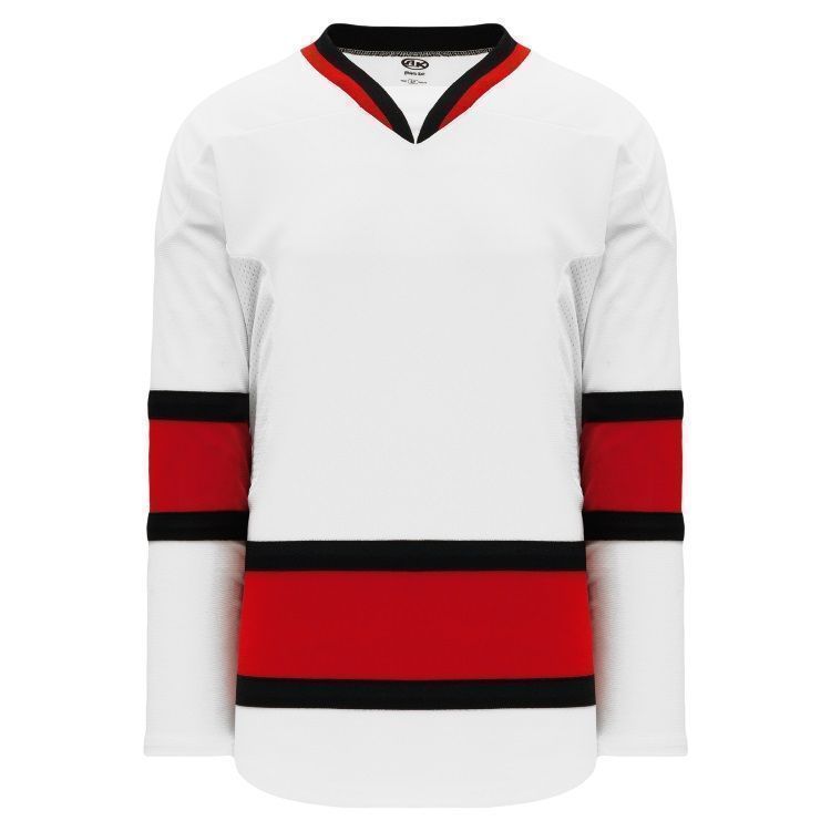 Team Canada 2002 blank hockey jerseys feature pro-weight AK-Knit fabric with authentic sewn striping worn by Team Canada. AK CAN679C CAN680C blank hockey jerseys also feature 2-layers of material on the shoulders / elbows, a v-neck or lace up design, underarm mesh gussets and reinforced stitching. Buy blank or customize with screen printing or twill. Choose from youth through adult goalie sizes. Made in Canada.