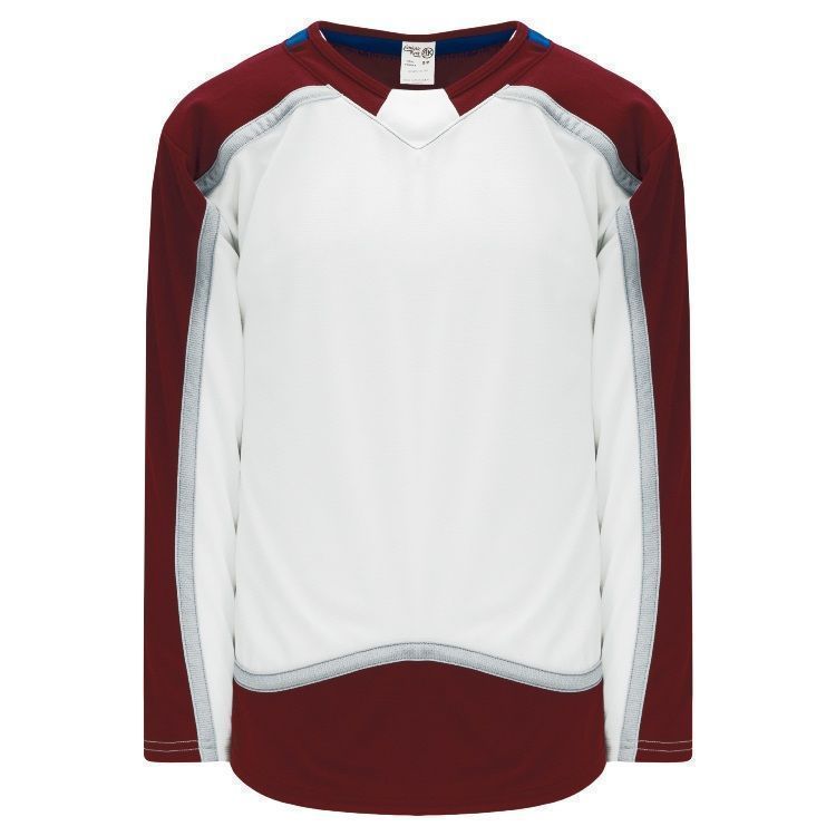 Blank Colorado Avalanche home and away jerseys feature pro-weight AK-Knit fabric with authentic Avalanche striping and neck pattern. Athletic Knit Avalanche blank hockey jerseys also feature 2-layers of material on the shoulders / elbows, v-necks with inserts design and reinforced construction. Buy blank or customize with screen printing or tackle twill logos, numbers and player names. Purchase youth through adult goalie cut sizes. Made in Canada.