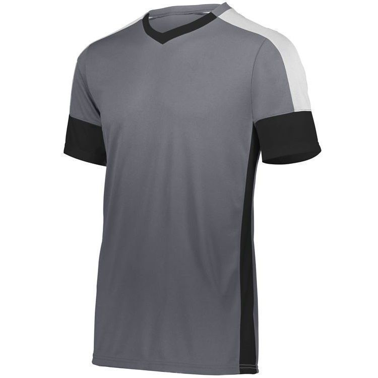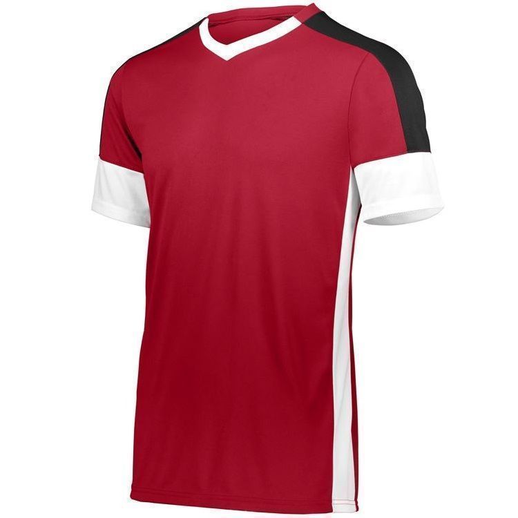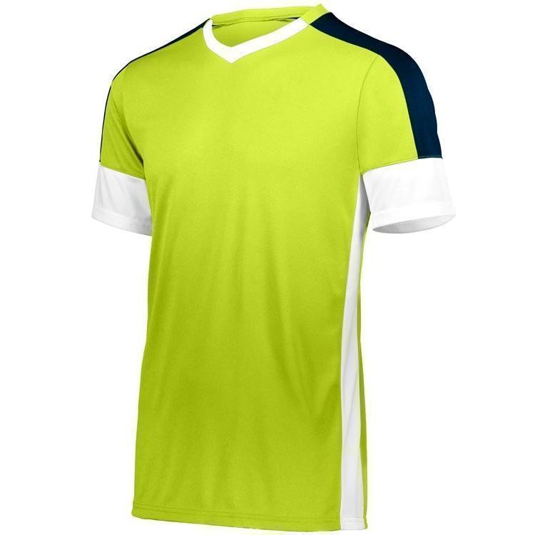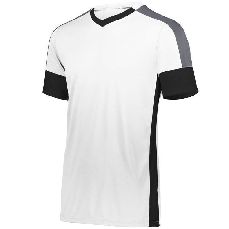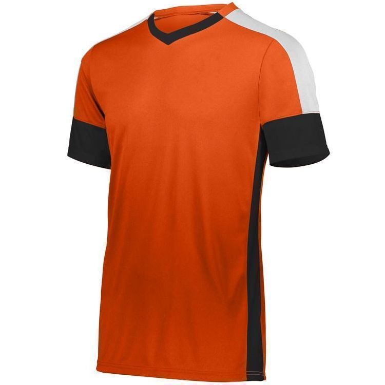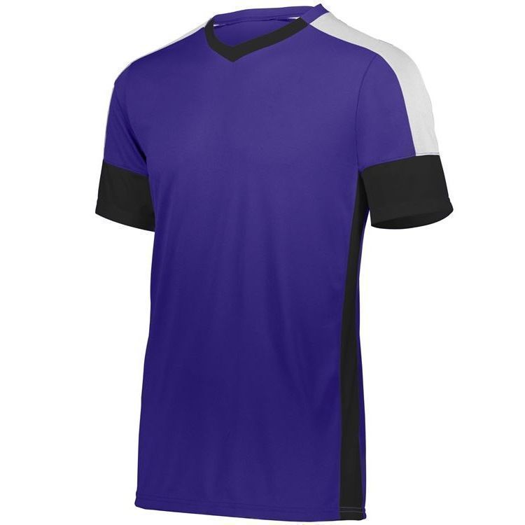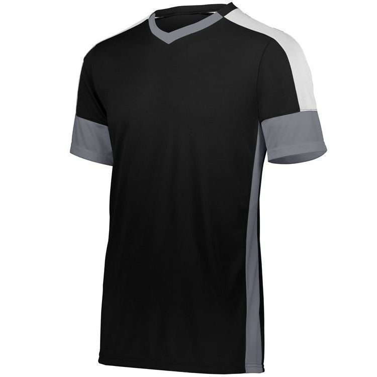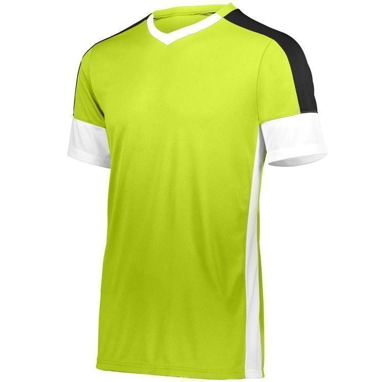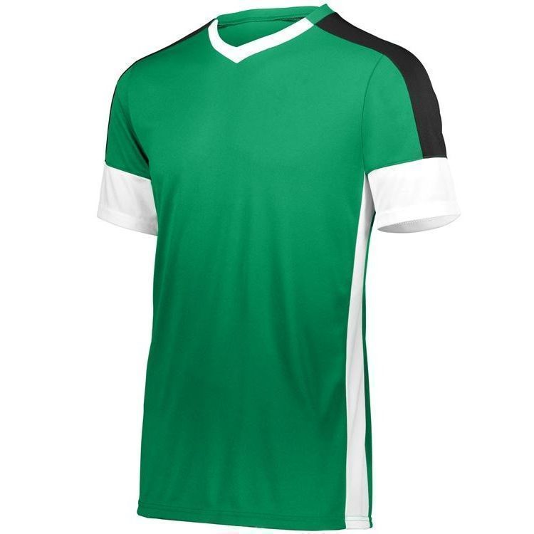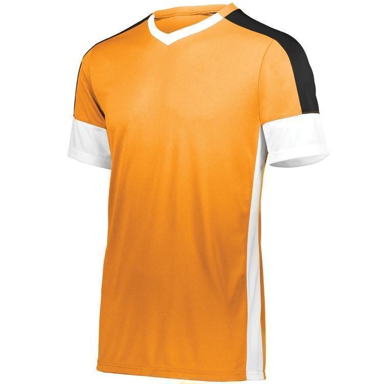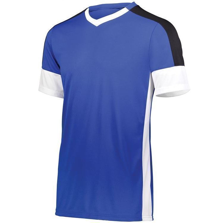 High 5 Wembley soccer jersey is made of moisture wicking fabric with 3-color design and contrast color inserts. High Five 322930 322931 soccer jersey features contrast color stripes on the shoulders and sides, two piece collar and set-in sleeves.