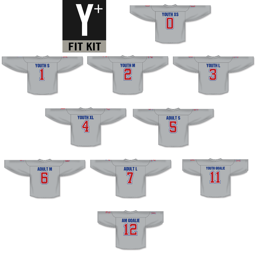 Youth Kit: (1)YXS, (1)YS, (1)YM, (1)YL, (1)YXL & (1)Y-Goalie