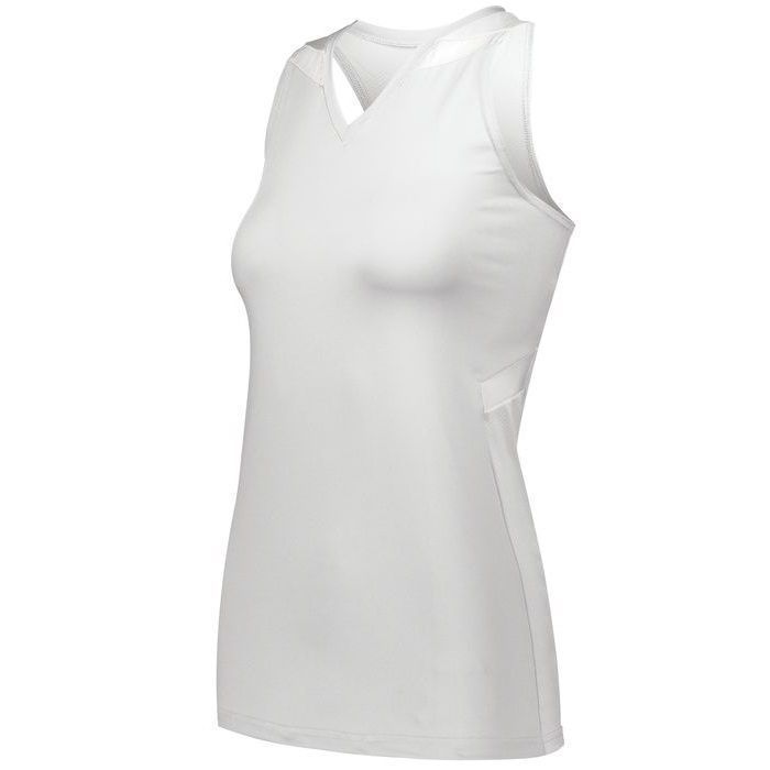 Holloway 221337 womens PR Max compression track singlet features a 84% polyester / 16% spandex Dry-Excel 4-way stretch fabric that wicks moisture away for easy evaporation. Holloway 221337 ladies track tank was designed for sprinters with a fitted design, racerback cut, contrasting color stretch mesh side panels, self binding neck & armholes, heat seal neck and two needle stitching at hems.