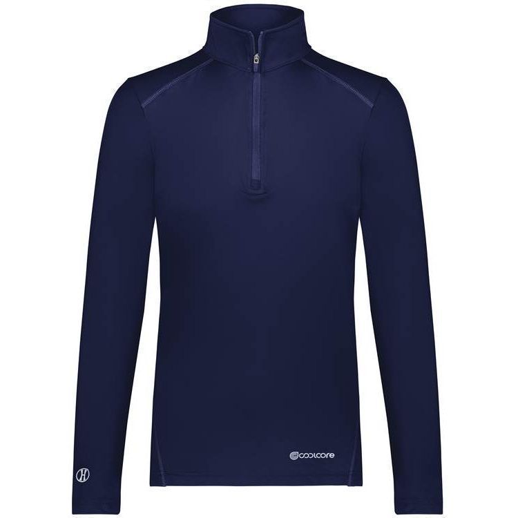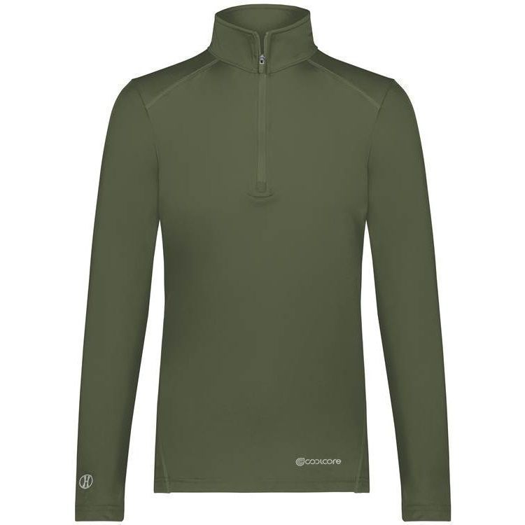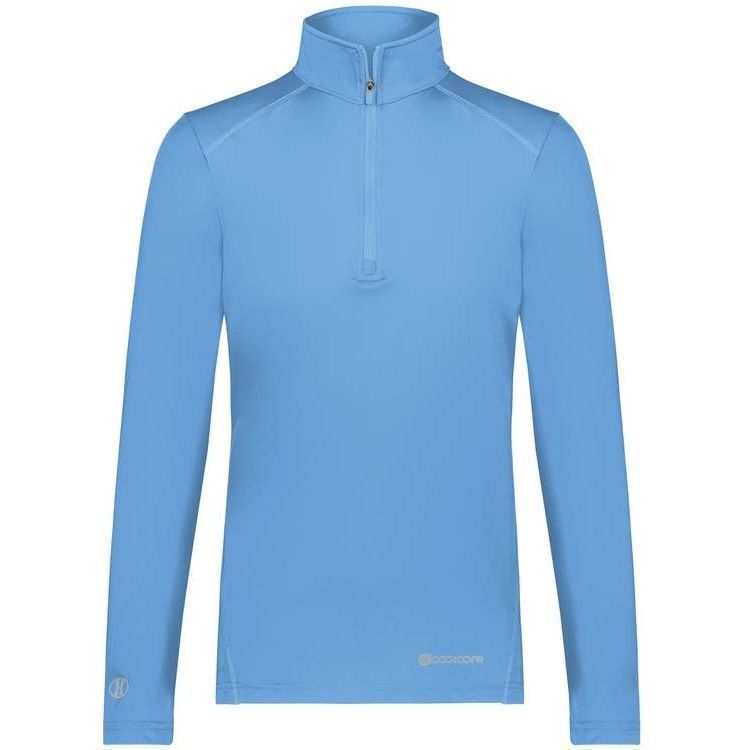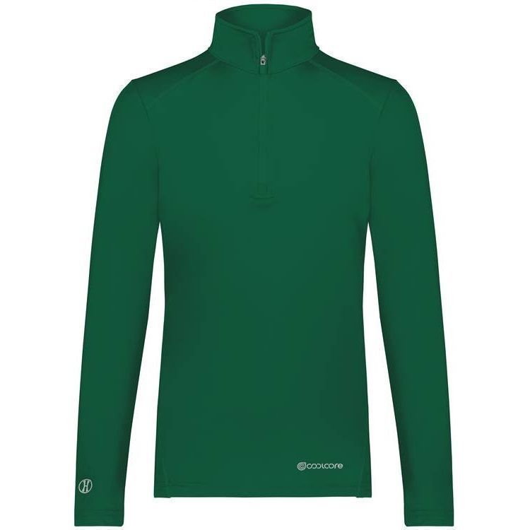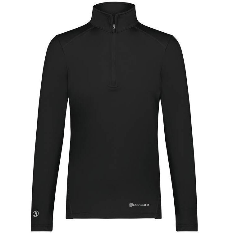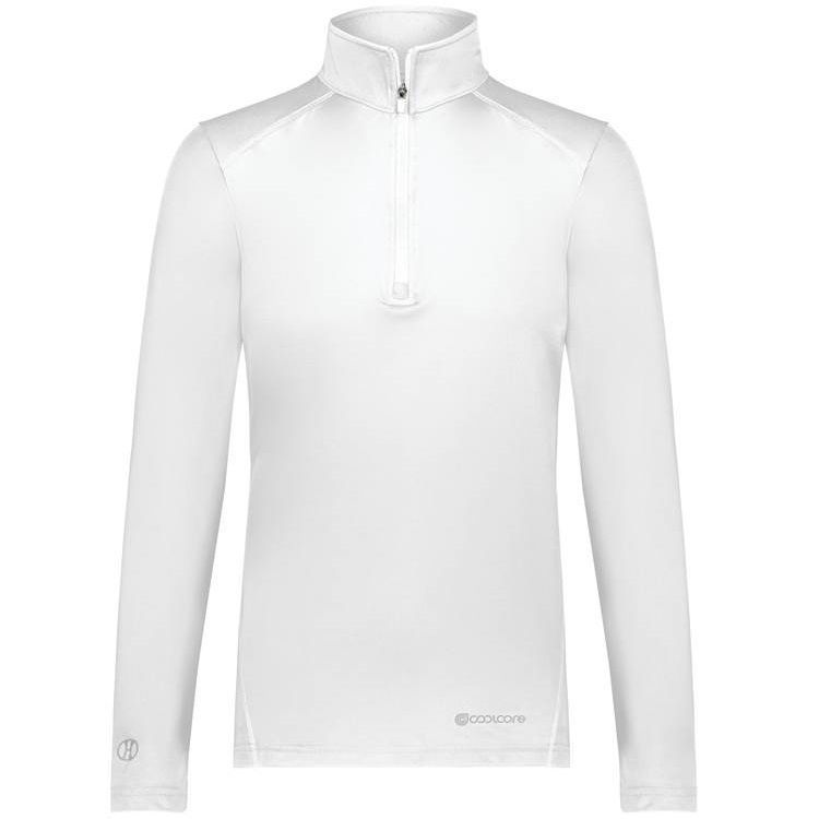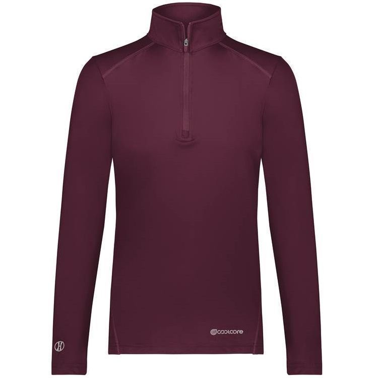 Holloway 222340 Premium CoolCore Womens 1/4 Zip Pullover features poly spandex CoolCore wicking fabric that draws moisture away from the body for quick evaporation. Holloway 2221340 ladies shirt also features 4-way stretch, 50+ UPF sun protection, 1/4 zip front, set-in sleeves, contrast stitching and a tagless label for comfort.