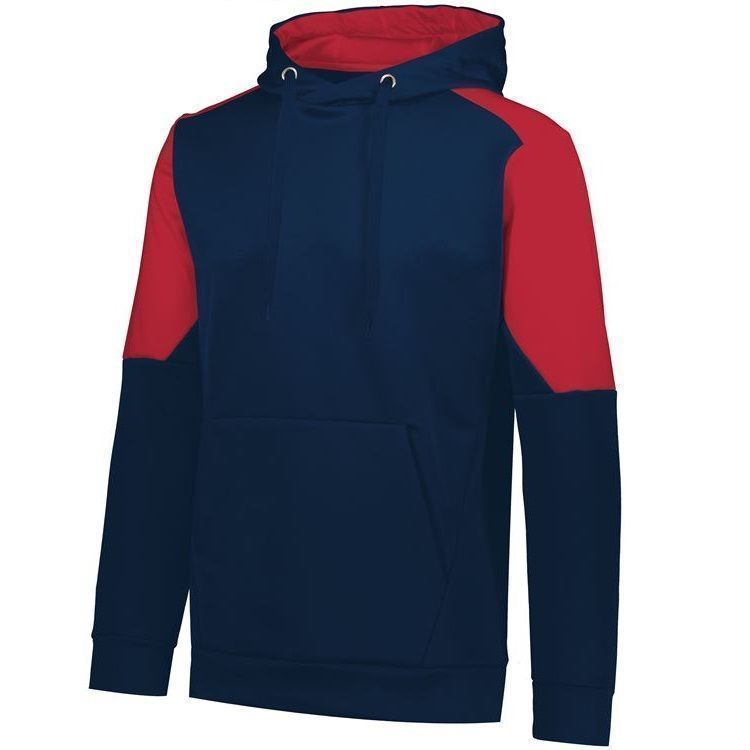 Holloway 222540 Momentum Hoodie features 5.9 oz polyester performance wicking fleece with color secure technology. Holloway 222640 hoodie also features a 2-color design, 3 piece hood with mesh lining, front pouch pocket, drawcord (adult only), self cuff and bottom hem.