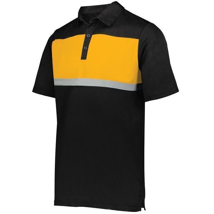 Holloway 222576 Prism Bold Coaches Polo features Dry-Excel wicking fabric with honeycomb knit pattern and striped front. Holloway 222576 Polo also features 50+ UPF sun protection, a three button classic placket, side vents, set in sleeves and a contrast weld tape stripe on lower front chest.