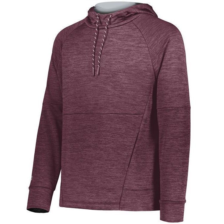 Holloway 223580 All-Pro Hoodie features 6.8 oz polyester performance melange wicking fleece with color secure technology. Holloway 222580 hoodie also features a 3 piece scuba hood with mesh lining, front pouch pocket, raglan sleeves, self cuff and bottom hem.