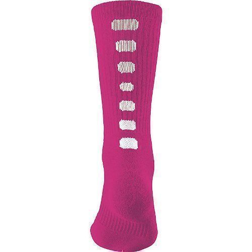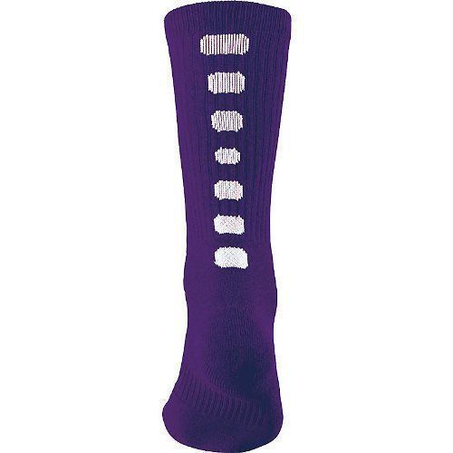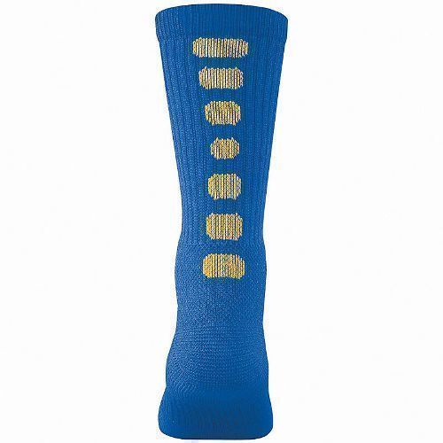 a 55% polyester / 22% nylon / 20% cotton / 3% spandex blend with moisture wicking technology. Augusta 6091 socks also feature a calf length, contrast color mesh vents on back, arch compression to reduce fatigue, cushioned toe, sole and heel. These socks are great for a variety of sports including basketball and football.