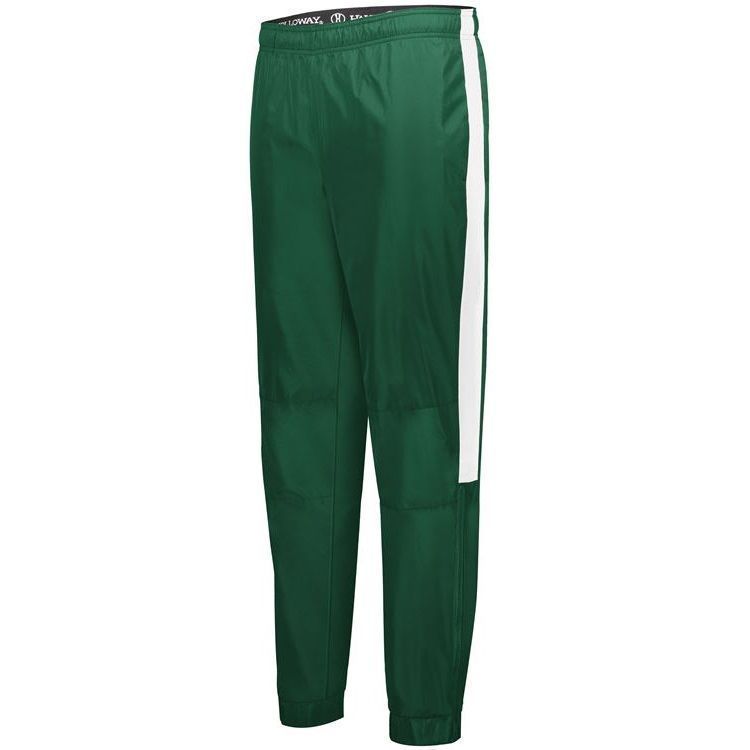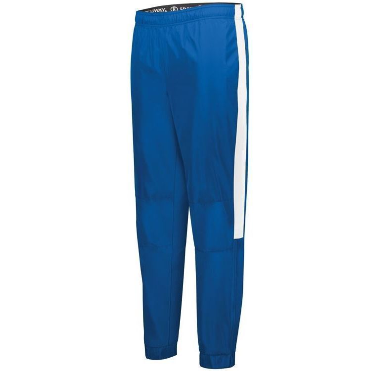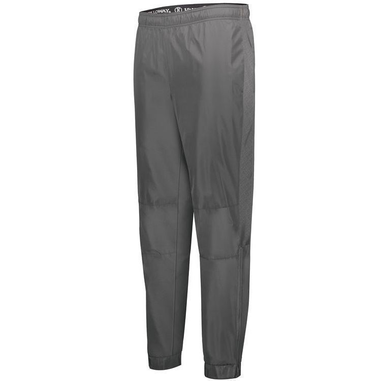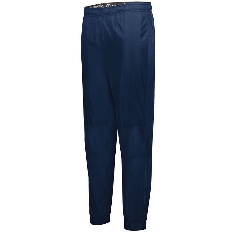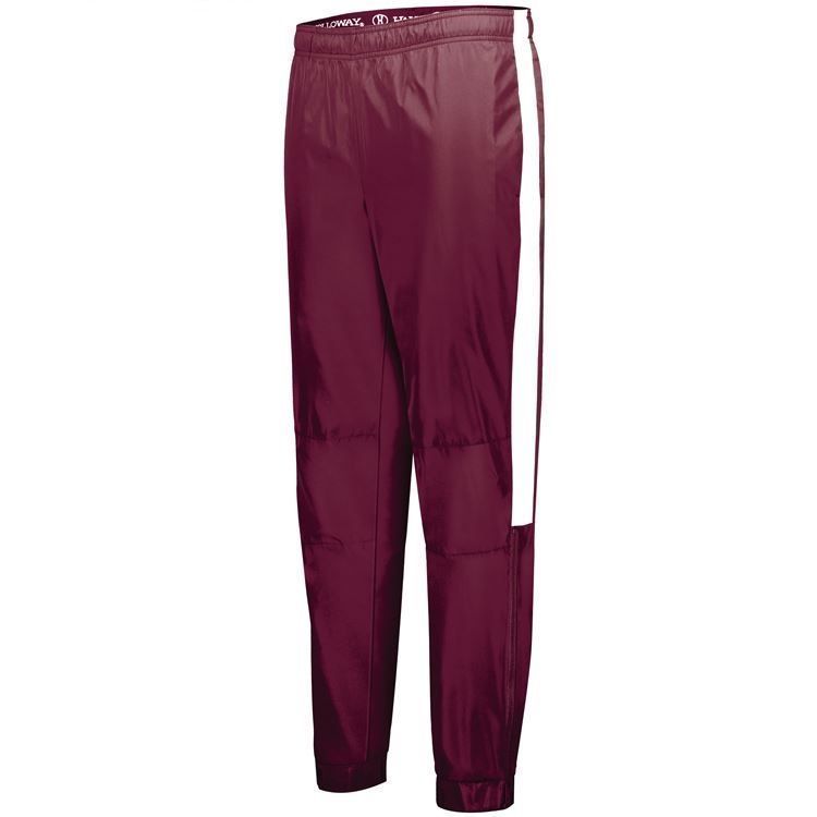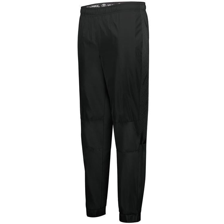 Holloway SeriesX Micron Wind Pants feature a Micron Poly water resistant outer fabric, contrast textured embossed stripes, micro mesh inner lining, elastic waistband with drawcord, easy entry side pockets, back welt pocket, elastic bottoms with zipper leg.