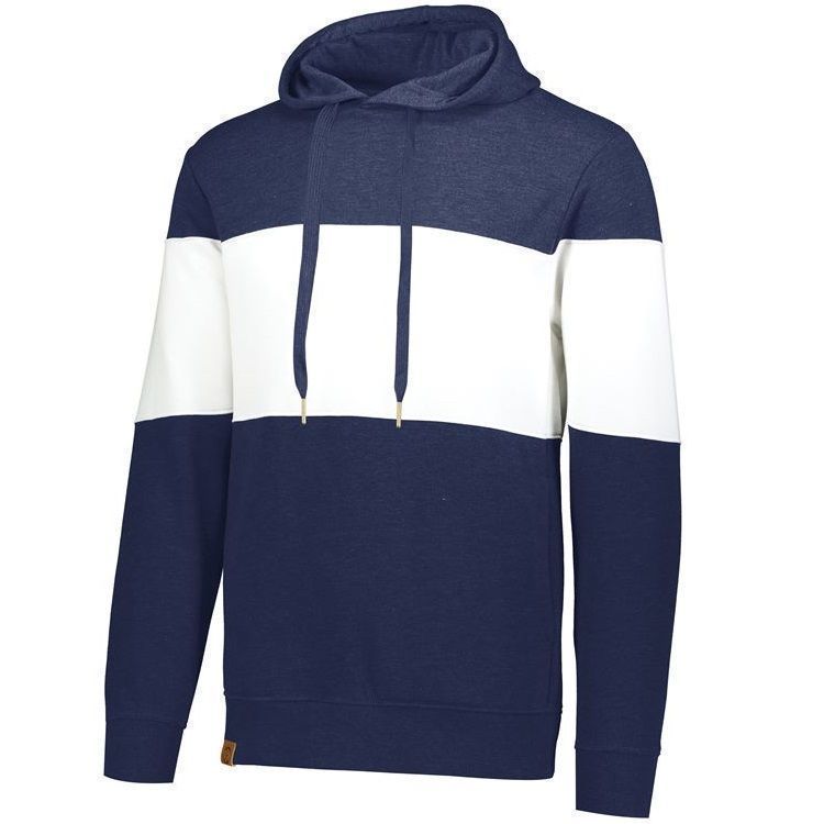 Holloway 229563 Ivy League Hoodie features 7.6 oz 55% polyester / 41% cotton / 4% rayon fleece with a super soft feel. Holloway 2225563 hoodie also features a 2-color design, jersey lined hood with metal tipped drawcord, set-in sleeves, spandex blend rib-knit cuffs / bottom hem and exterior faux leather logo loop label.