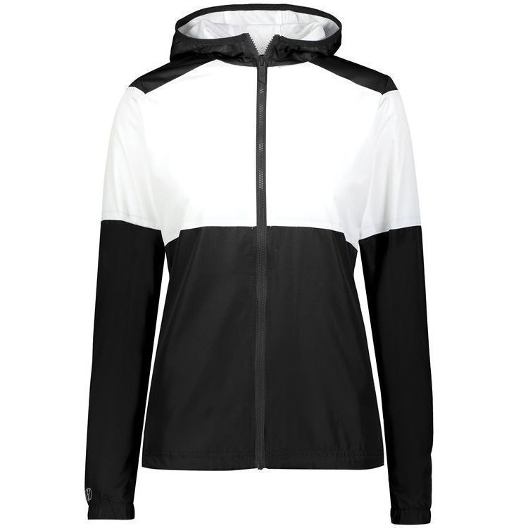 Holloway 229728 Womens SeriesX Wind Jacket features a 100% micron polyester outer shell with embossed textured inserts. The Holloway 229728 ladies jacket also features a micromesh lining, 3-piece hood with spandex binding, contrast front panel, set-in sleeves, front zippered pockets and elasticized cuffs with open bottom hem with hidden shockcord closure (adult only). Water resistant.