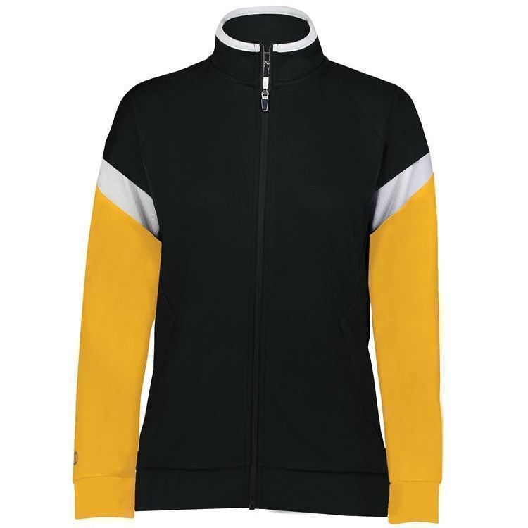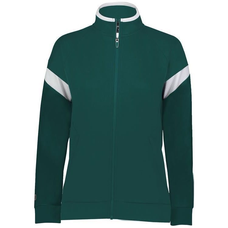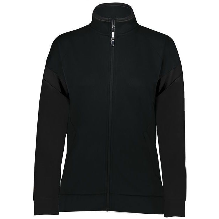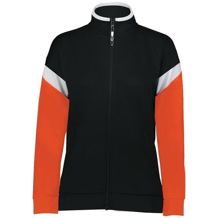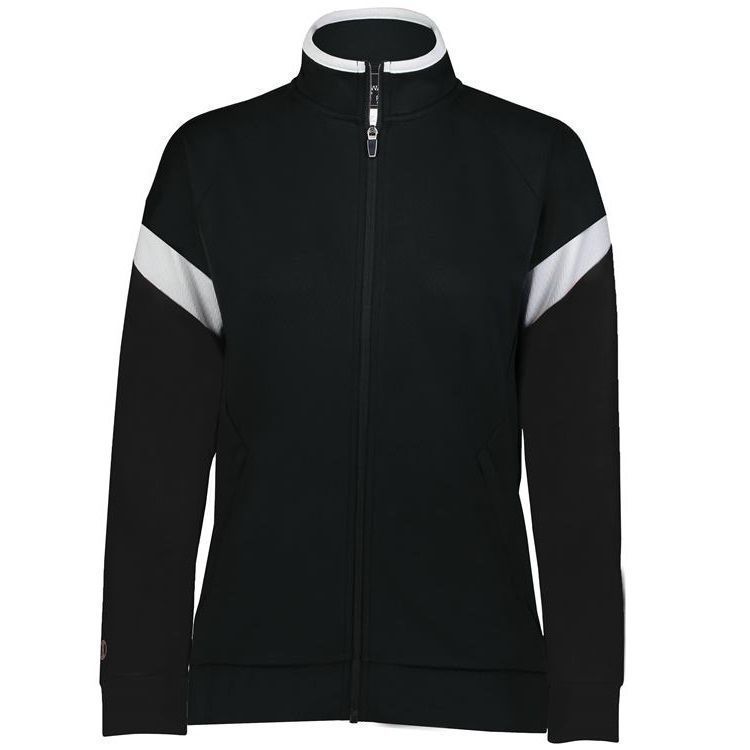 Holloway 223779 Womens Limitless Track Jacket features Dry-Excel wicking polyester double knit for maximum airflow. Holloway Limitless ladies jacket also features contrast sleeve stripes, a full zip design, front pockets with zippers, raglan sleeves, and rib-knit cuffs and bottom hem. Limitless Jacket was built for comfort and versatility.