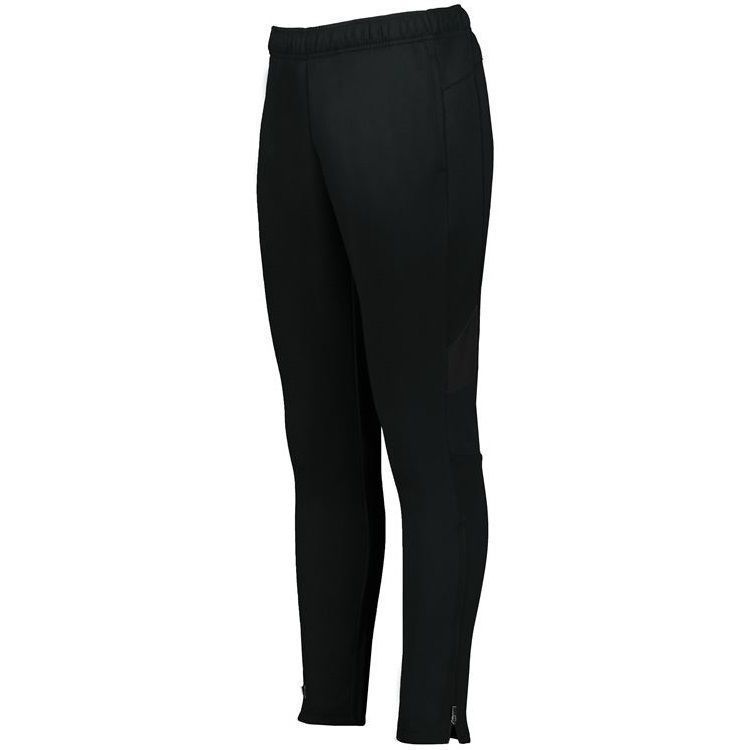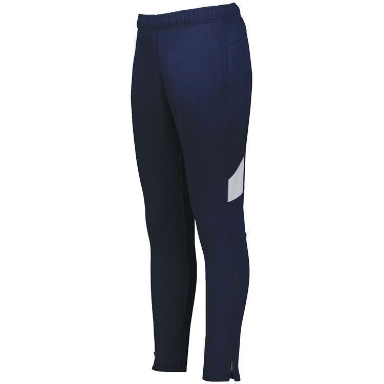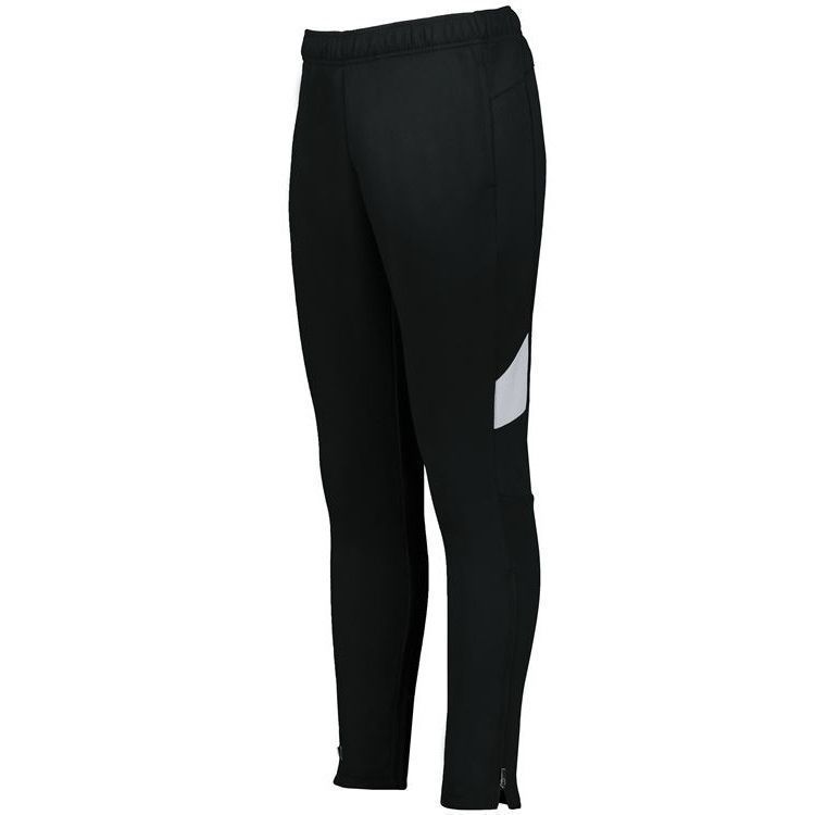 Holloway 223780 Womens Limitless Track Pants feature Dry-Excel wicking polyester double knit with pinhole mesh back knee inserts. Holloway Ladies Limitless pants have a tapered leg design, contrast color side stripe inserts, covered elastic waistband with drawstring, side seam pockets and zippers on outside lower legs.