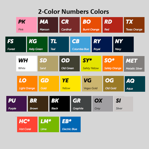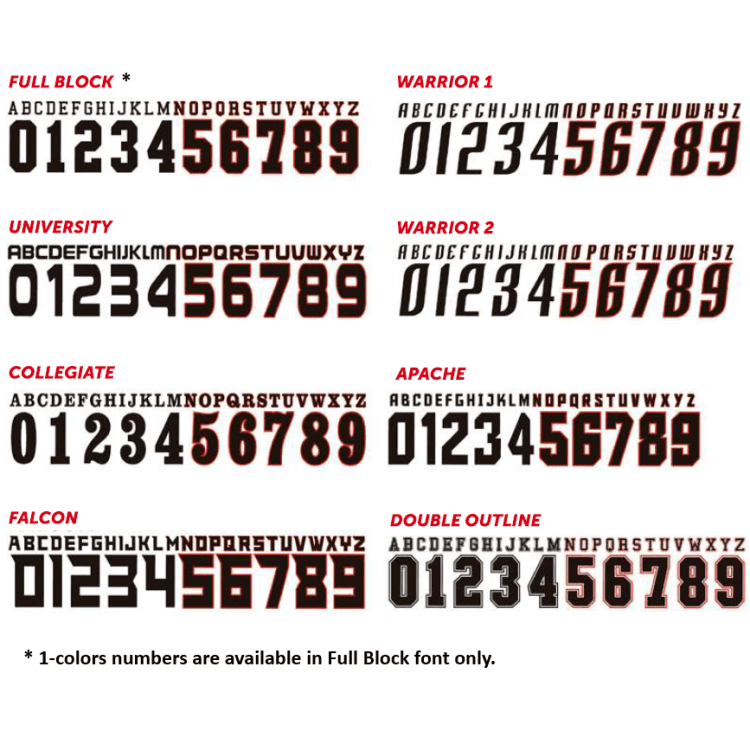 Augusta Sports Group decorated numbers are very popular option for Augusta, High 5 and Holloway baseball, softball, basketball jerseys and tees. Choose between basic screenprinted numbers in 3, 4, 6 and 8 inch sizes sizes.Choose from several colors.