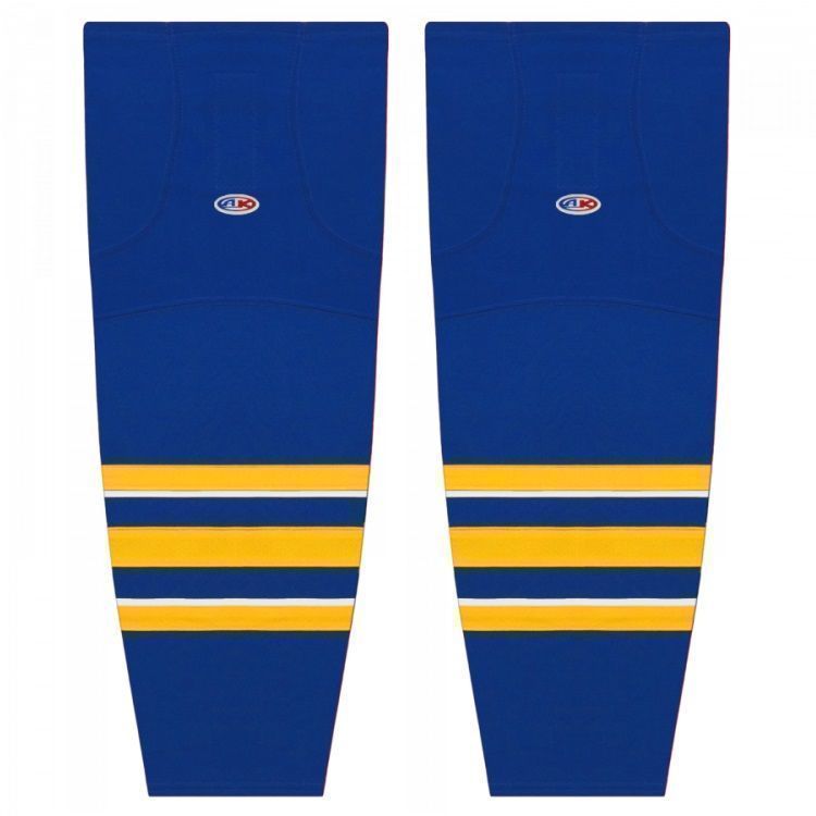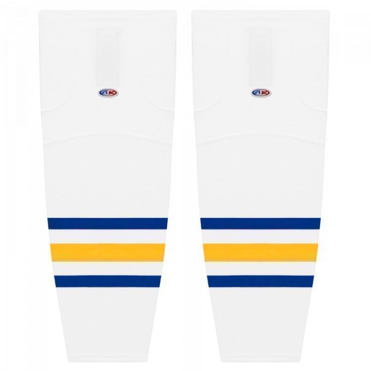 Buffalo Sabres air knit hockey socks in new 2022 pattern. Sabres air-knit hockey socks in stock in adult, intermediate and youth sizes in throwback, royal, gold and white striping. Athletic Knit HS2100 air-knit hockey socks feature pro weight edge style air knit fabric with Dry-Flex wicking stretch panels and two sewn Velcro tabs.