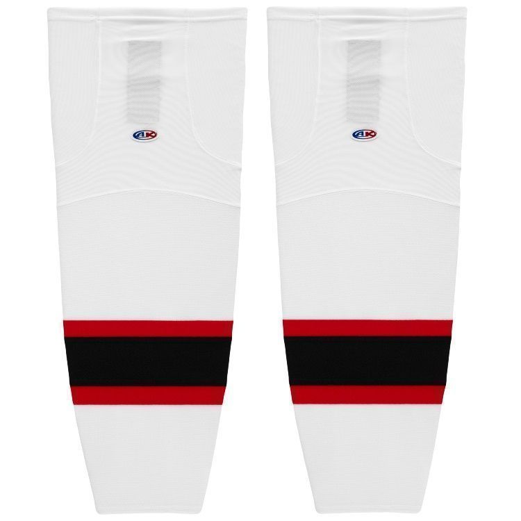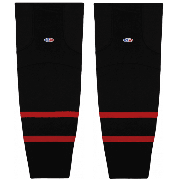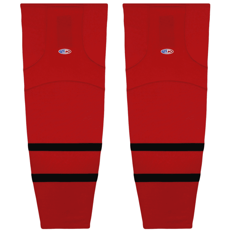 Ottawa Senators air knit hockey socks in 2021 home, away and 3rd styles. Ottawa Senators air-knit hockey socks in stock in adult, intermediate and youth sizes in authentic Senators black, red and white sewn striping. Athletic Knit HS2100 air-knit hockey socks feature pro weight edge style air knit fabric with Dry-Flex wicking stretch panels and two sewn Velcro tabs.